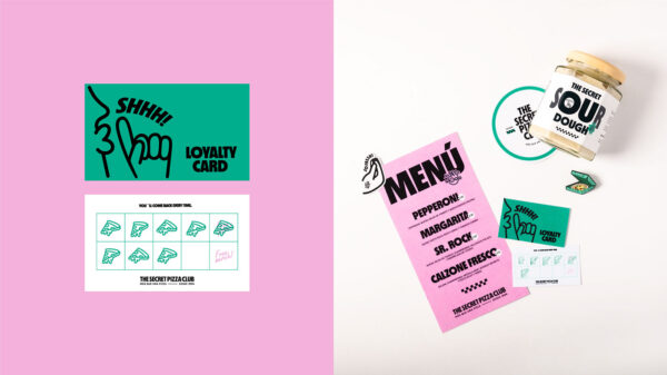 A rumor spreads through the dark streets of Chihuahua, Mexico. Get to know The Secret Pizza Club. For its composition, we were inspired by the famous Italian pizzerias of New York and the Teenage Mutant Ninja Turtles, deviating a bit from the traditional by choosing a different color palette than that used by the food industry, establishing a new scheme where pink and green coexist amid the natural contradiction of black and white. Tradition can also be fun. This is The Secret Pizza Club.