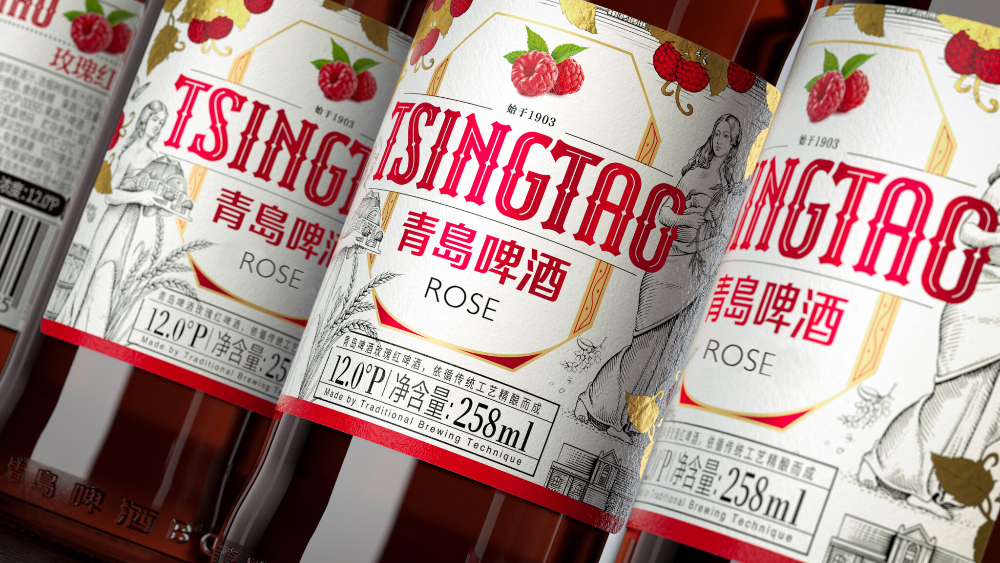Our journey began at the Tsingtao Beer Museum, where we drew inspiration from its rich history. This product first made waves by winning the gold medal at the Munich Beer Fair in 1906. Holding the original certificate, adorned with delicate depictions of four goddesses, sparked our creativity. We reimagined these goddesses through fresh illustrations: Demeter, the goddess of grain, adorned with a lilac wreath, and Hestia, goddess of hearth and family, evoking a sense of ritual and freshness.