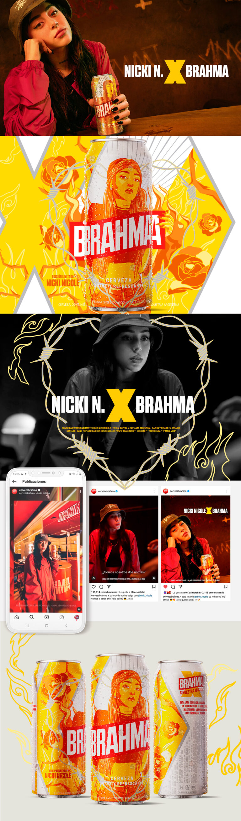 We´ve created the beer cans to portrait Lali, L-Gante, Duki, Bizarrap and Nicki Nicole, today´s mayor icons of the urban music in Argentina. Each can has the personality of each of the artists, incorporating the elements that represents them the best. This way creating a perfect union between the brand and the artists.