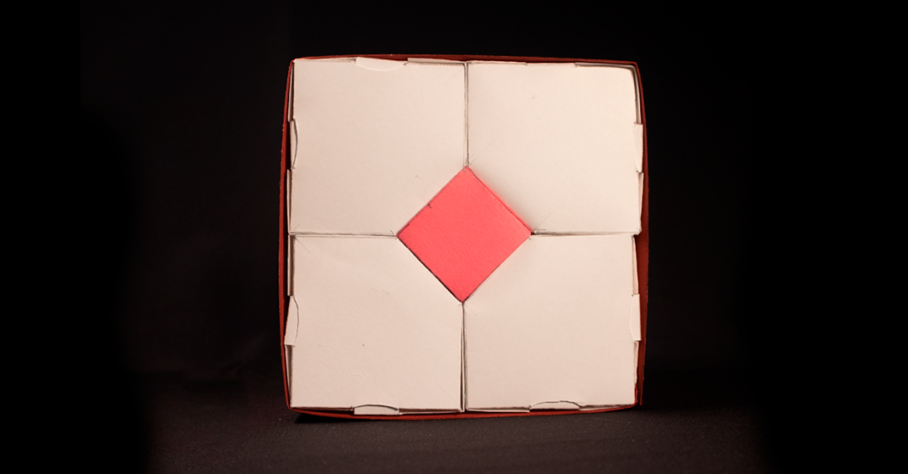 I designed an innovative packaging that stands out for its unique shape and functionality, inspired by traditional food, in particular by Caciocavallo dell’Emigrante, a cheese that hides a salami inside. Similarly, this rectangular packaging is composed of four parts that, when placed side by side, form a perfect square. Inside, there is a rectangle rotated by 45 degrees, creating an intriguing and sophisticated visual contrast.
