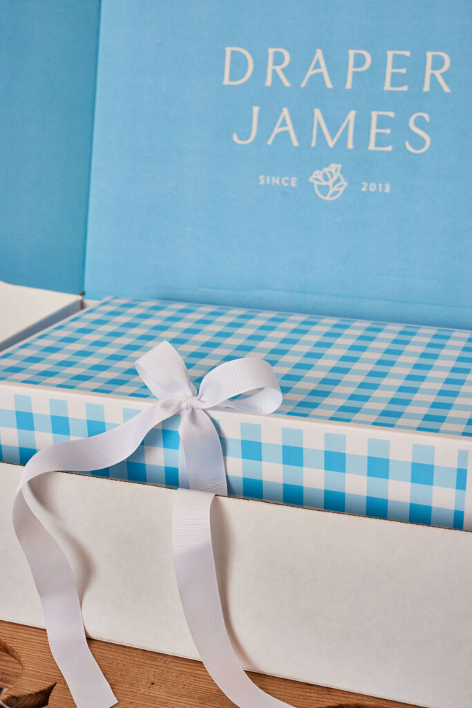 The design draws on Draper James’ signature blue and white palette, incorporating gingham patterns and floral motifs that are integral to the brand’s visual language. These elements were carefully selected to ensure the packaging feels both cohesive and instantly recognizable to the Draper James customer.