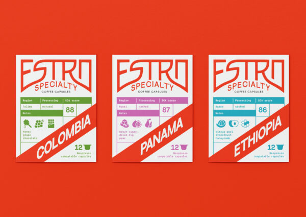 ESTRO is a new brand of coffee capsules, the main advantage of which is new technologies that allow you to better preserve the qualities of coffee. It was planned to launch three product lines of different function and different price categories at once, so the main difficulty of the project was to create three lines of packages under a single brand. The main solution is three different types of graphics, stylistically and meaningfully corresponding to the target audience of each of the three diverse product lines.