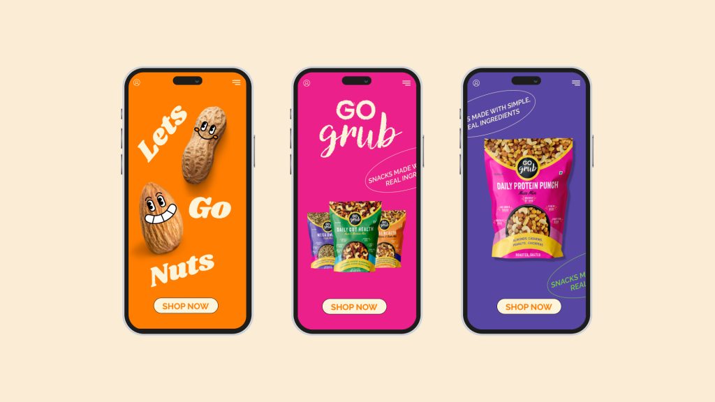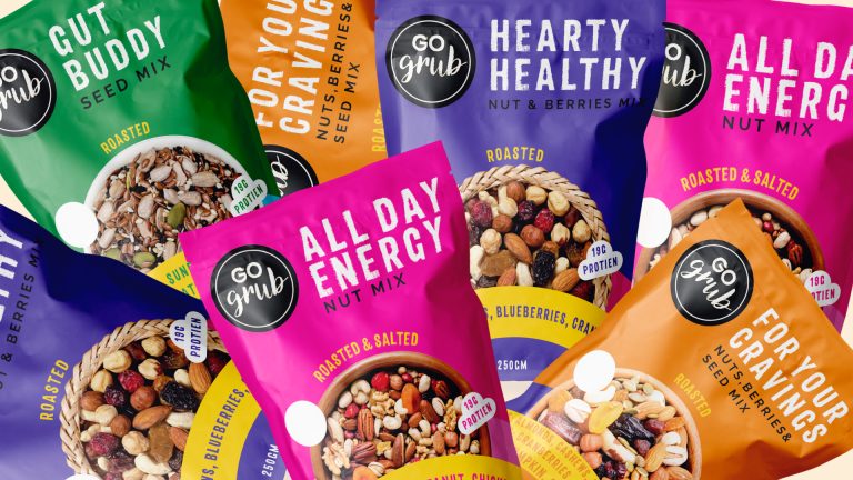 Our approach to designing the packaging for GO GRUB was to create vibrant, attention-grabbing visuals that stand out in both e-commerce and retail spaces. We focused on showcasing the natural appeal of the nuts and mixes, using bold colors and clear, engaging typography to highlight the product’s health benefits and ingredient quality. By emphasizing the brand’s ethos of simplicity and delight in every bite, our design ensures that GO GRUB not only attracts the eye but also communicates its core values effectively to the consumer.