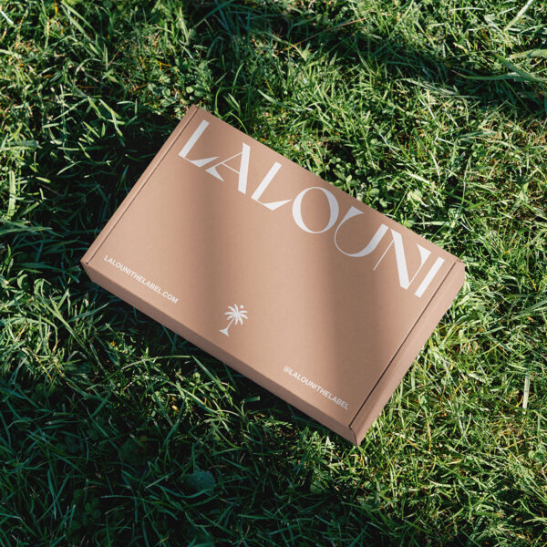 The Lalouni brand style is bold, luxurious, sophisticated, colorful, approachable, inclusive, and timeless yet contemporary. We designed a modern, contemporary logotype accompanied by 2 distinct brand marks: a double L mark that will be used for the sportswear collection, and a second mark that consists of a stylish, chic palm that would be used to elevate the more sophisticated swimwear or dress collections. The logo is paired with a contemporary font meant only for very big headers (Grand Slang), while medium headers are set in a bolder, taller sans serif font called Gazzetta.