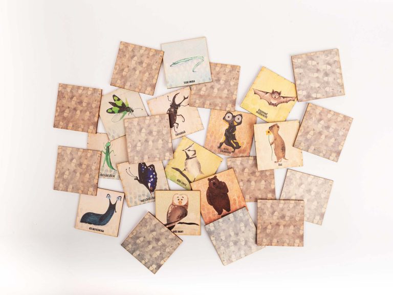 The game follows the traditional memory game rules, with the cards featuring the characteristic animals of Aggtelek National Park. The animals’ faces display various emotions, making the cards even more personal and playful.