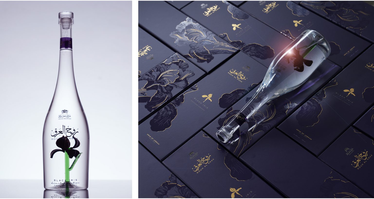 The bottle itself is a handblown work of art crafted from crystal, inspired by Jordan’s national flower, the Black Iris, a rarity as unique as this Arak.