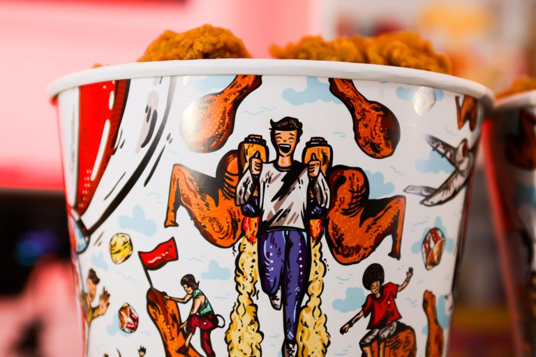 The design of the KFC bucket is inspired by capturing moments of happiness and fun in everyday scenes. We dive into a world where food not only nourishes the body but also the spirit, bringing joy and connection to people.
