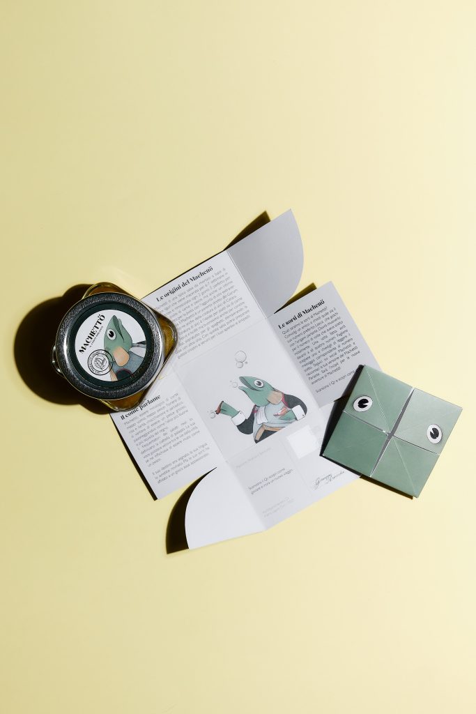 To do so, the studio created “Talking Machettö”, a lively origami included in the package that creates a direct interaction with the end consumer. “The origami has a dual function: on the one hand, it adds depth to the packaging, on the other, it offers a playful element designed to stimulate conversations during the preparation of meals or to entertain children in the kitchen”.