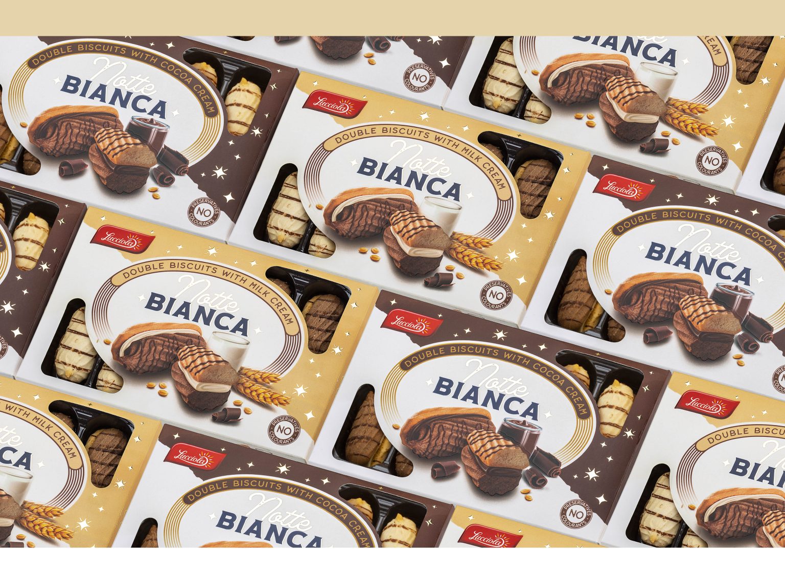 At Modern World Studio, we have long been looking for a metaphor that is multi-meaningful and at the same time tells about the product itself. It was important that the name and the design of the packaging corresponded. Our concept turned out to work. We bet on contrasts – light and dark, day and night, white and black, milk and chocolate. Thus, Notte Bianka – “White Night” was born. We chose the Italian language for the brand to show that the biscuits are refined, made in the Italian style with a gourmet twist.