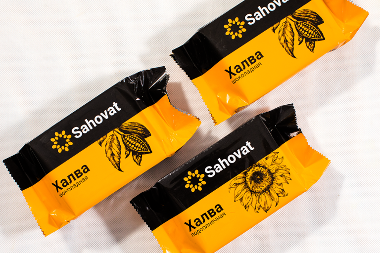 Сompany Sahovat asked us to create a new brand for halva, which would be recognizable on the store shelves. Halva is a type of confectionery originating from Persia (Iran) and widely spread throughout the Middle East and Central Asia. We have researched competitors and used those insights to create a visual system in which the key elements are a new logo, brand color and laconic illustrations.