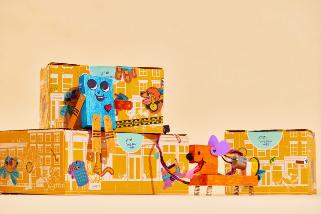 These experiences led to a simple revelation: Let’s create packaging as unique as the Brooklyn Robot Foundry approach to learning. We were inspired by the 500+ robots designed by BRF teachers, each using common parts and materials found at craft and hardware stores. We were also intrigued by the robot building process where kids learn advanced STEAM concepts and decorate their creation however they want, all while building in a supportive, collaborative environment.