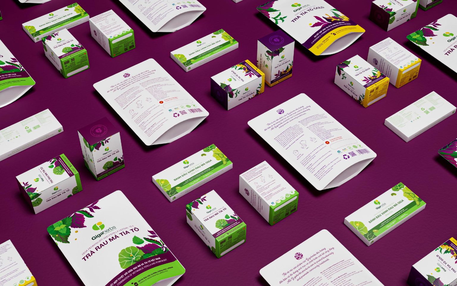 Tree Creative is proud to collaborate with Gigaherbs, sharing a commitment to healthy living, respect for traditional heritage, and the mission of building sustainable values. We developed a renewed brand identity and product packaging system for Gigaherbs, inspired by its vision, mission, and 3 core values: “CREATIVITY – RESPECT – RESPONSIBILITY.” Drawing inspiration from majestic mother nature and precious herbs, we chose natural green as the primary color, paired with pure white to reflect the industry’s essence and promote a sense of closeness and friendliness. The identity lines, inspired by herbal leaves, combined with a harmonious layout and colors, highlight the product’s natural ingredients, making it easily recognizable among competitors. The packaging design is simple and rustic, yet modern, reflecting the youthful, fresh, and natural spirit of the product.