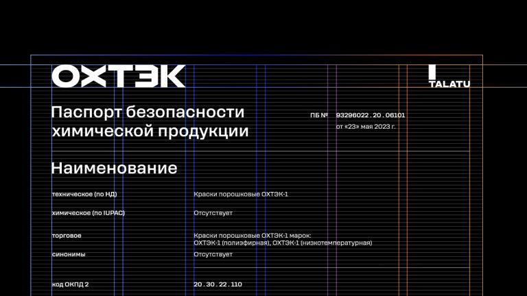 The LINII agency developed the brand identity and layout design for the OHTEK brand communication media. The wide range of paint applications became the main metaphor in the corporate style for the updated OKHTEK trademark of the TALATU brand.