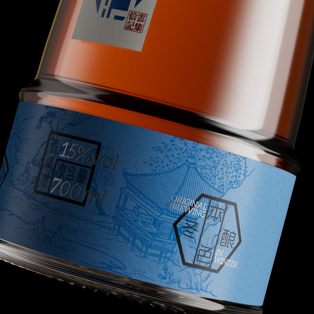 As the oldest wine in China, most of the current products on the market have packaging that is either too traditional, or imitates sake or Japanese whiskey, or seeks novelty without considering its profound traditional culture. So what we need to solve is how to inherit traditional culture and combine it with modern aesthetics, while making highly recognizable and unique packaging. We make modern adjustments based on the classic traditional bottle shape to make it more concise, smooth and unique. We use traditional colors and simple ancient book-style layout combined with modern expressions of ancient paintings to give the entire packaging a strong oriental charm, while also fitting the current aesthetics and being more differentiated.