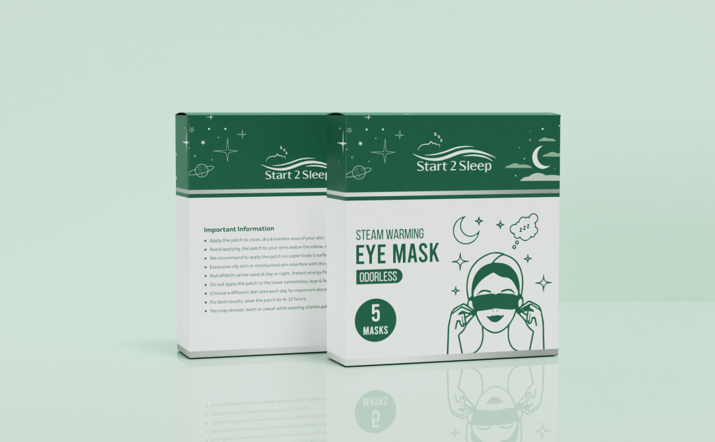 At PIXELAIN DESIGN AGENCY, we proudly designed the packaging for the Start 2 Sleep STEAM WARMING EYE MASK, an innovative product that enhances relaxation and sleep quality. Our mission was to create a packaging solution that embodies tranquility and promotes the essence of self-care.