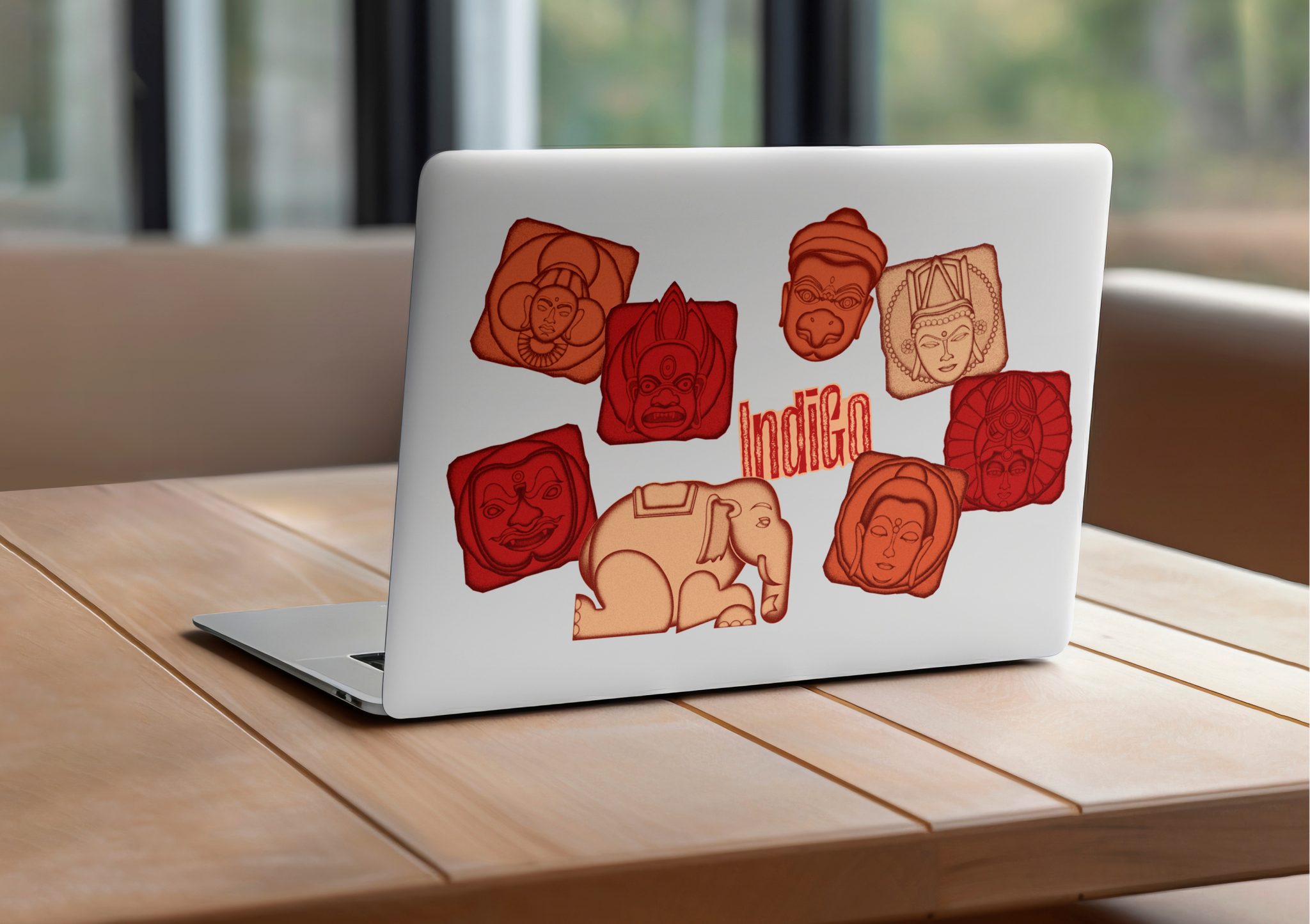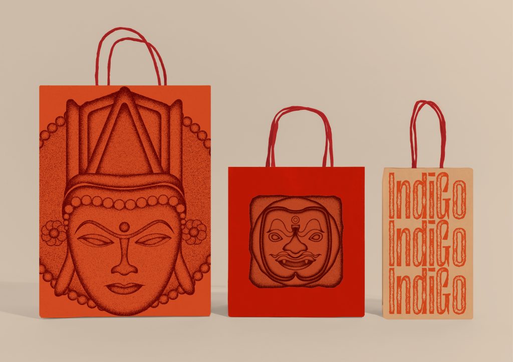 To create an atmosphere of authenticity, we developed a brand identity for IndiGo that reflects the spirit of India and its traditions. The design is based on images from Indian mythology – Hindu and Buddhist deities embodied in stylized characters.