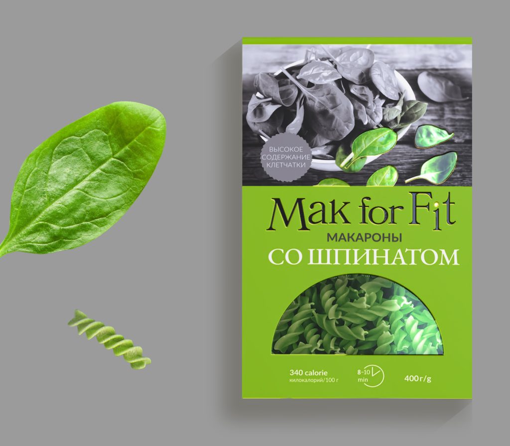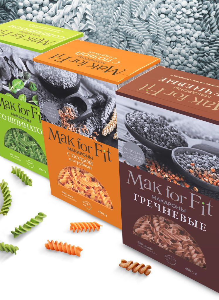 We were approached by the company “Russian Fabrikant”, which started production of paste with beneficial properties. Unlike classic colored pasta, they used buckwheat groats, spelt and spinach as a base. The goal was to emphasize the naturalness and usefulness of the new product.