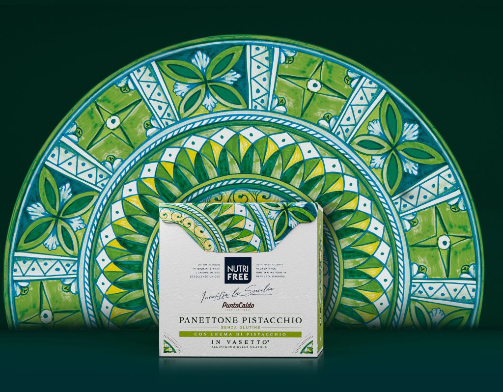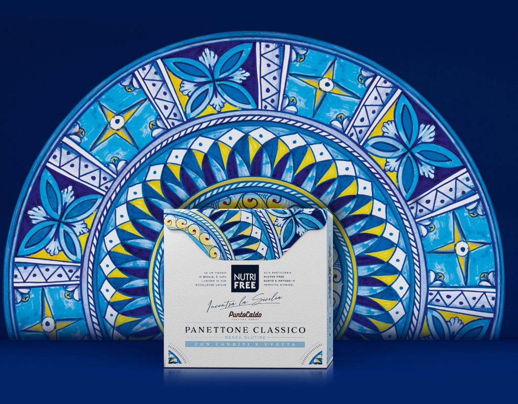 The packaging is more than just a container – it is a narrative that evokes Sicily in a sophisticated and elegant way, transforming each panettone into a gift-worthy object. Through this design, Nutri Free’s gluten-free panettoni become not just a taste experience but a sensory journey celebrating the richness of a unique land where tradition and innovation come together in perfect harmony.