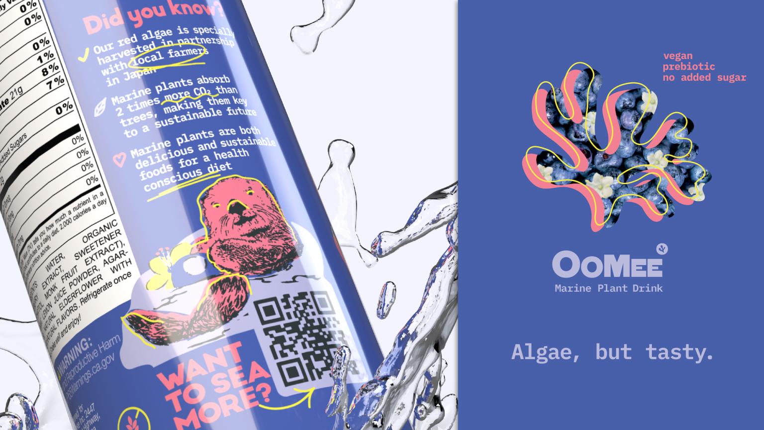 OoMee — is a new algae based refreshing drink that supports your gut health. It gives you the feeling of nourishing «Ooo, me!» with soluble and insoluble fiber inside. Consuming it you are taking care of yourself and the planet as marine plants absorb 2 times more CO2 than trees.