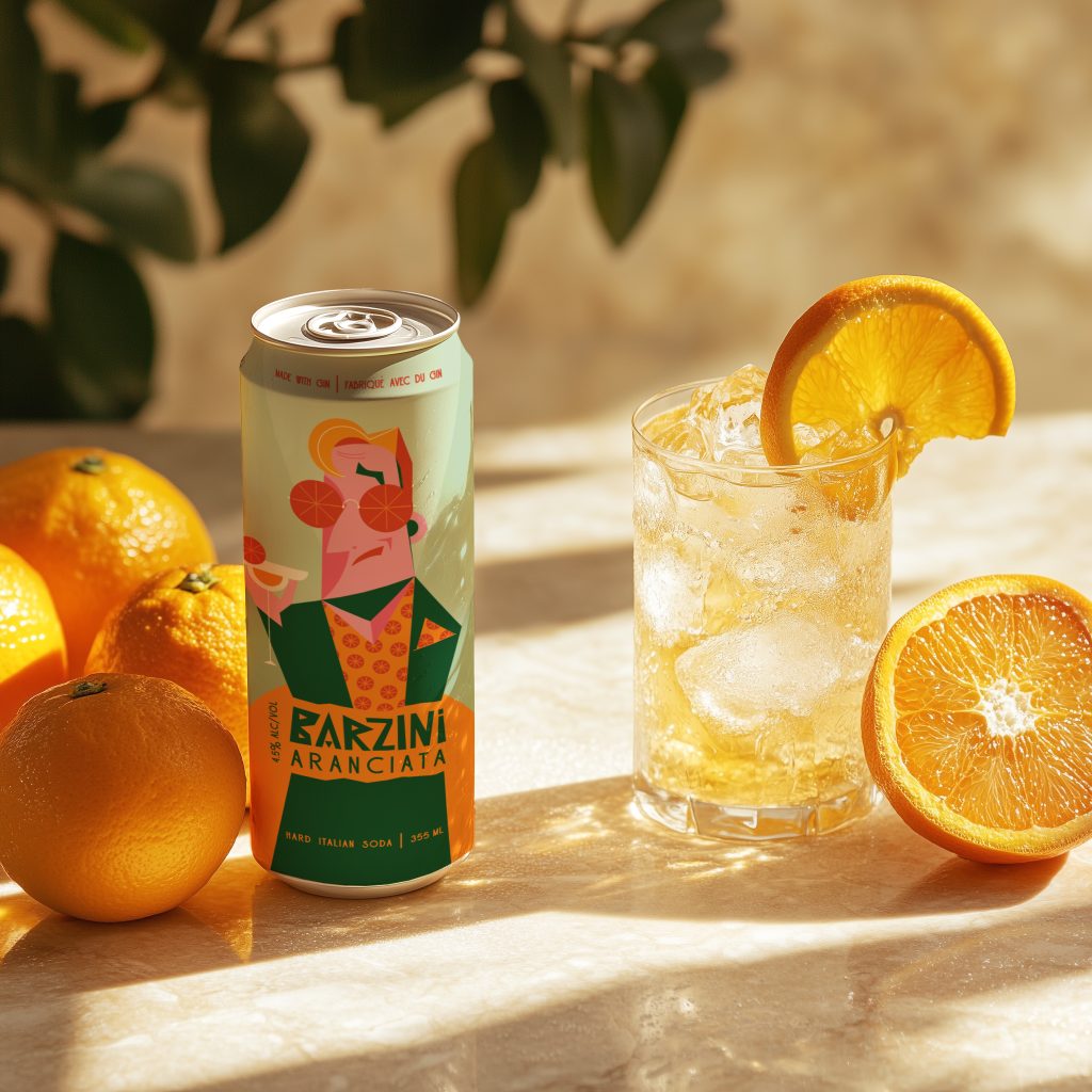 At the heart of the Barzini packaging design lies the mission to capture the brand’s fun, vibrant essence while evoking a sense of nostalgic sophistication. Barzini, a spirited blend of gin, aranciata, and limonada, is crafted for lively occasions—poolside gatherings, bustling cafes, and street food experiences. The brief called for a design that reflected the playful and social nature of the product while channeling the charm of vintage Italian beverages. Targeting young, outgoing consumers, the challenge was to balance modern appeal with nostalgia, ensuring relevance in a saturated canned beverage market.