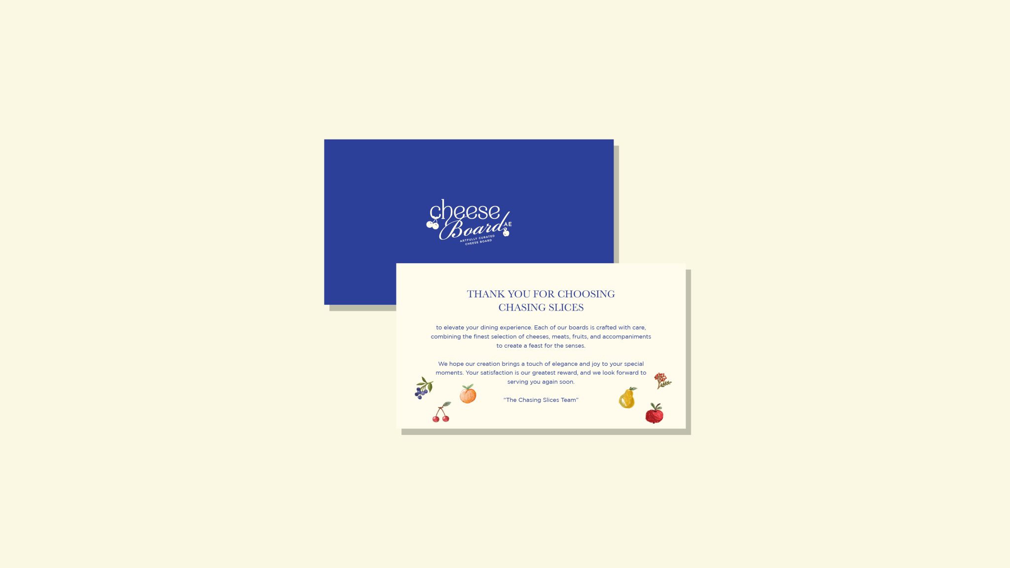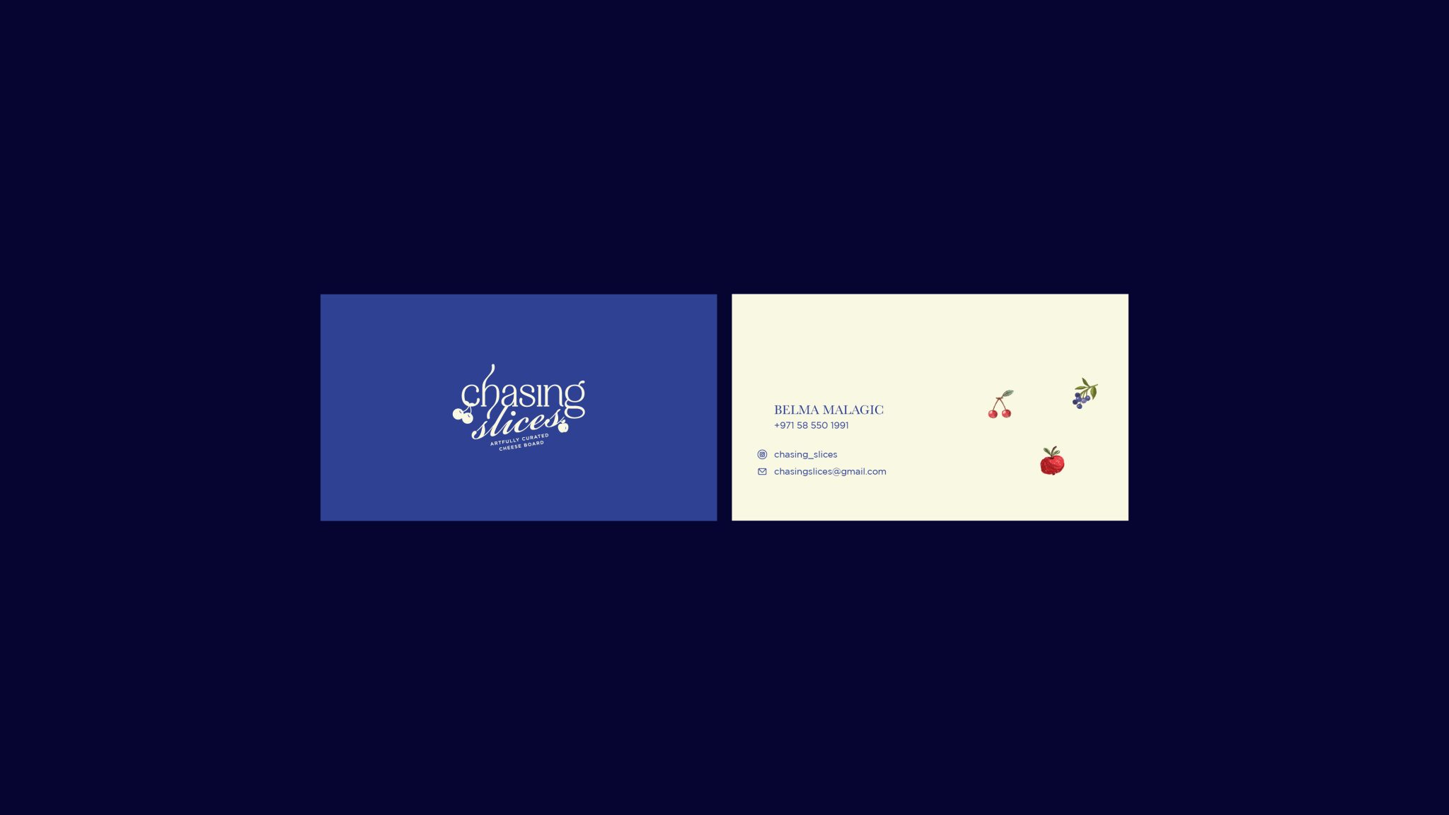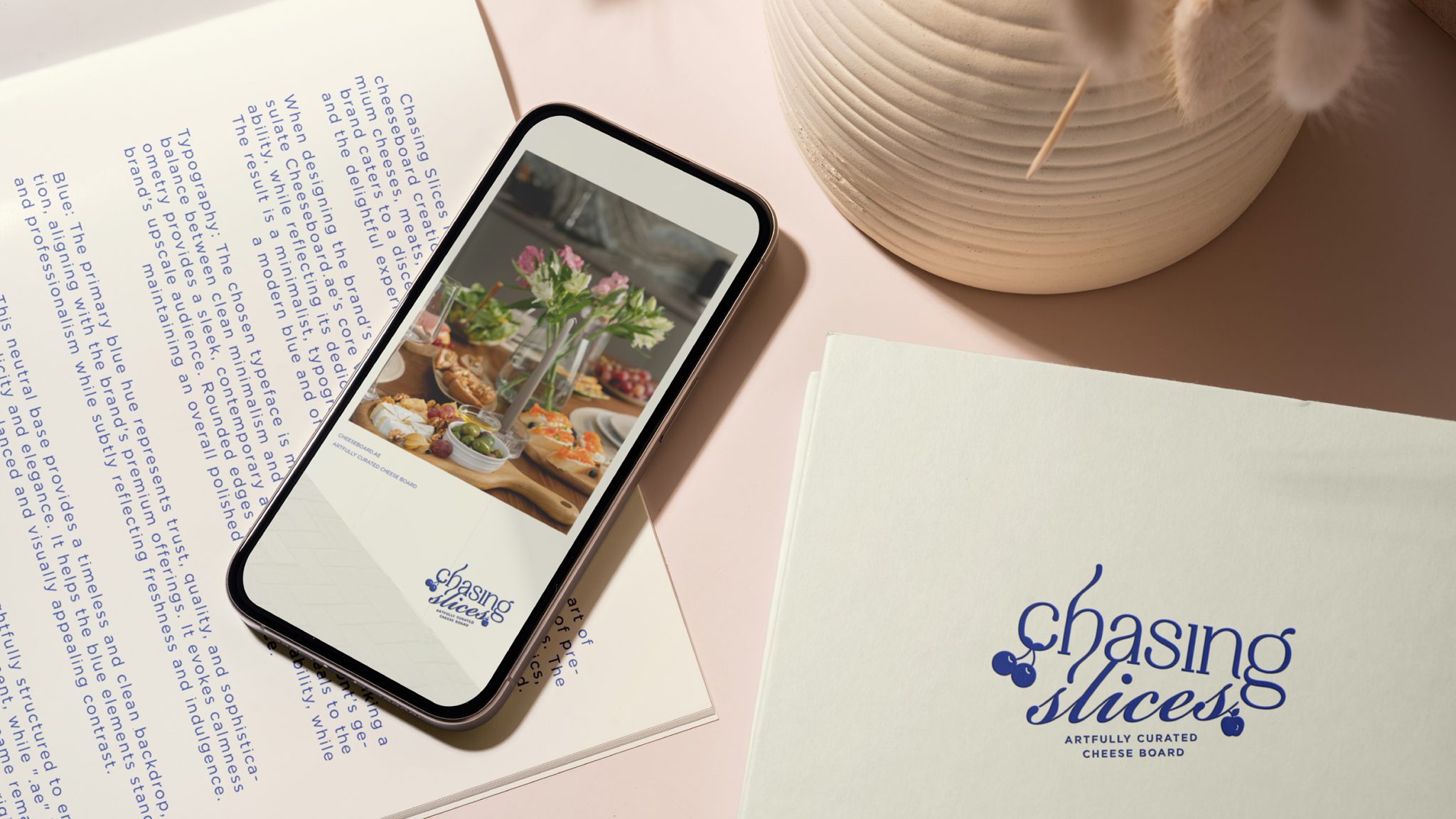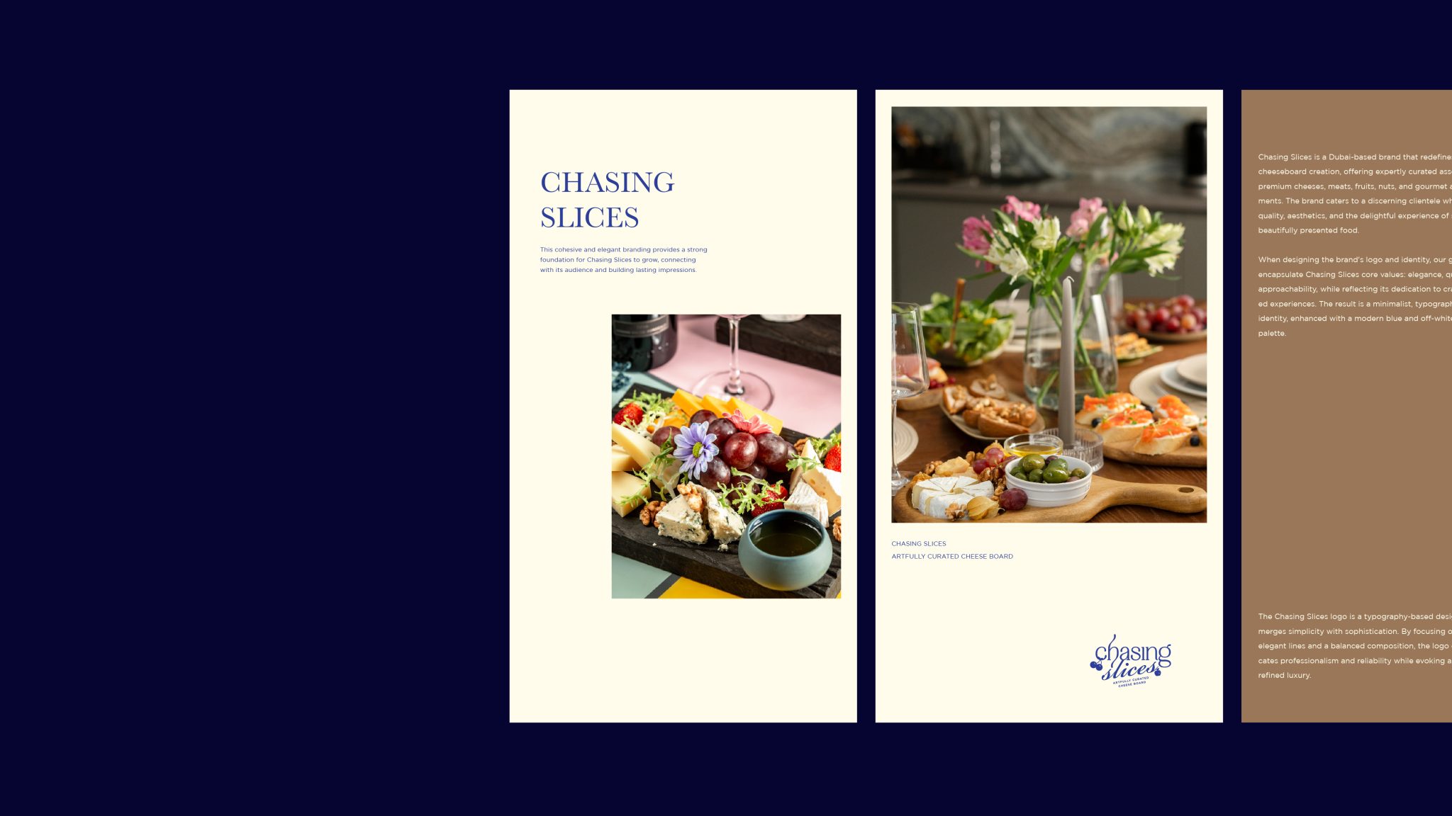 For Chasing Slices, we crafted a cohesive visual identity that embodies sophistication, quality, and a touch of charm. The minimalist, typography-centered logo features carefully balanced elements, merging simplicity with luxury. To reflect the brand’s dedication to excellence, we utilized a refined blue and off-white color palette, ensuring a modern yet timeless aesthetic.