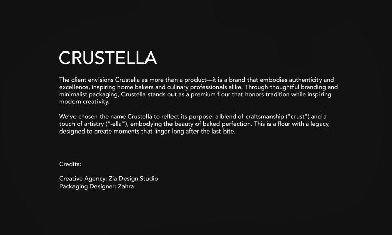 CRUSTELLA | Brand Identity & Packaging Posted on December 30, 2024December 30, 2024 Bakery Food 21541580 Submitted By: ZiaDesignStudio CRUSTELLA | Brand Identity & Packaging
