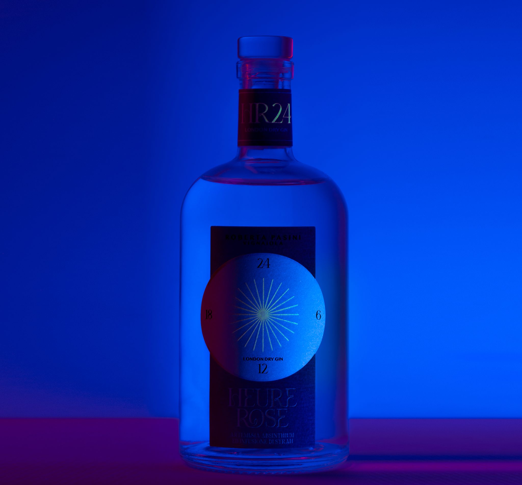 Heure Rose is a gin that captures the magic of time flowing, crafted from Syrah grapes, Artemisia Absinthium, and pink pepper. Inspired by the legendary “green hour” of absinthe, this gin reimagines the aperitif in a poetic and bohemian way. The fluorescent label glows as night falls, unveiling an enchanting play of light and shadow: a ritual where every sip tells the allure of dusk.