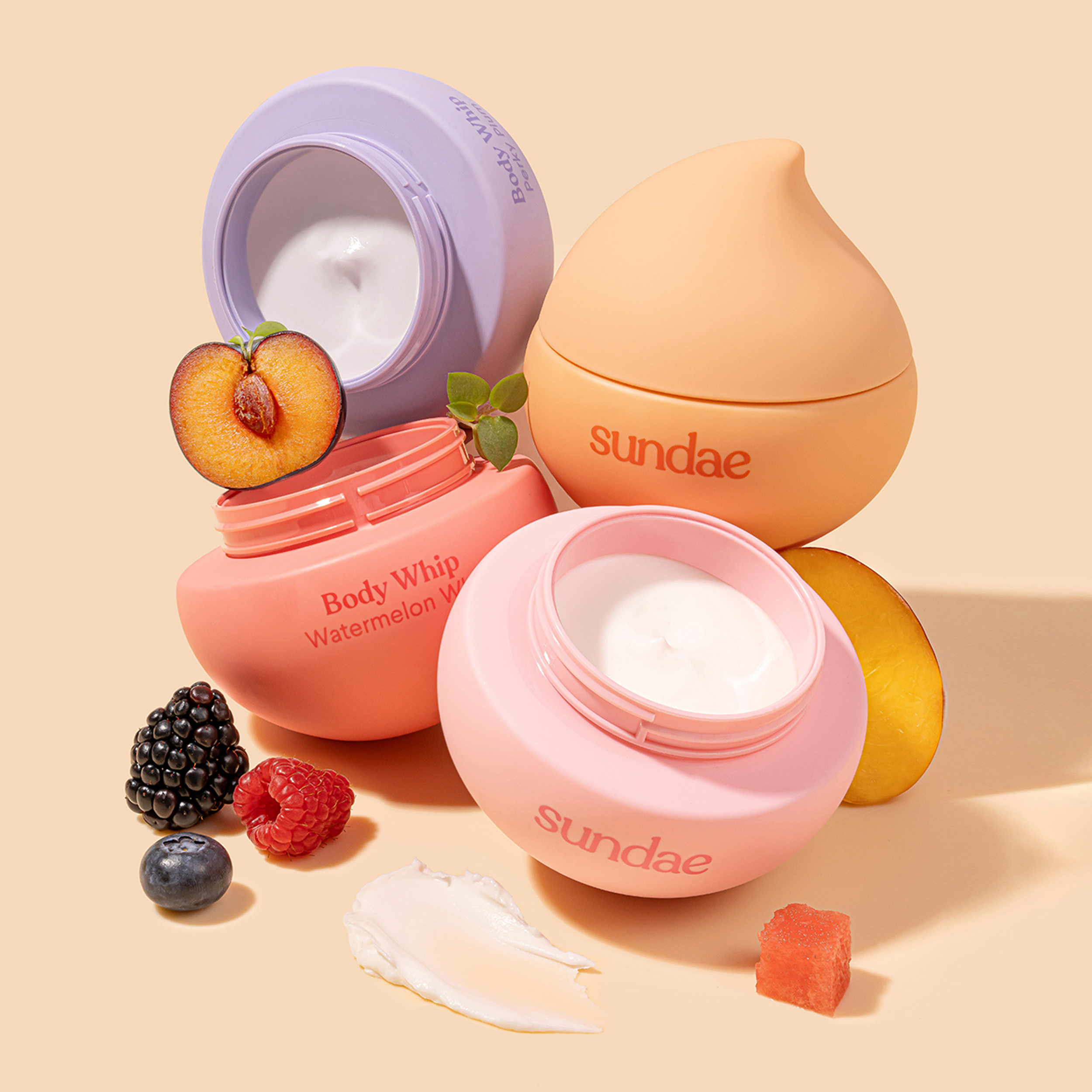 Following on from the success of their Foaming Body Wash, Sundae commissioned Jo Cutri Studio to conceptualise and create the product & packaging design for their new Body Whip moisturiser range.
