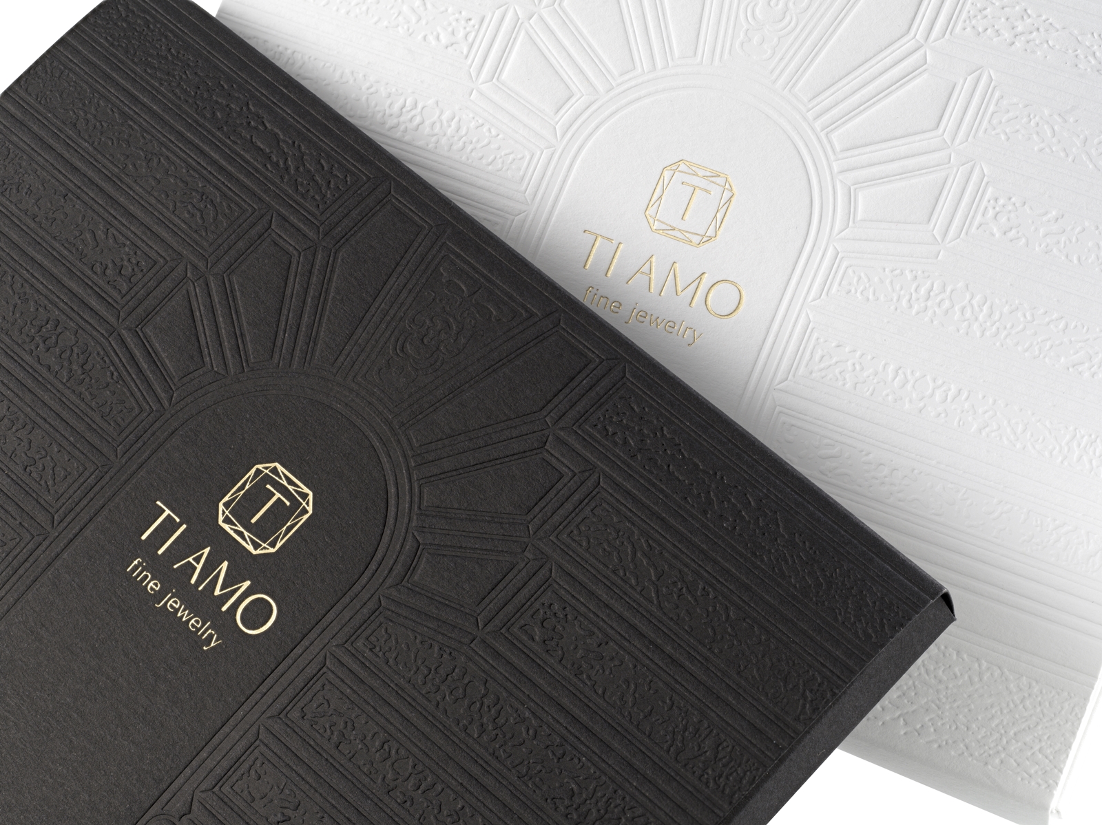 We mixed traditional techniques (blind debossing, hot foil stamping) with modern digital printing and UV varnish. The basic colours highlight the colourful jewelry after opening.