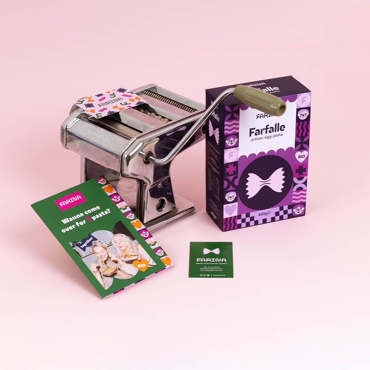 For the pasta of the brand Farina, instead of traditional plastic bags, I designed recyclable paper boxes. When creating the design, important considerations were distinctiveness, lovability, and eye-catching appeal. These attributes were achieved with a geometric, colorful, and modern pattern.