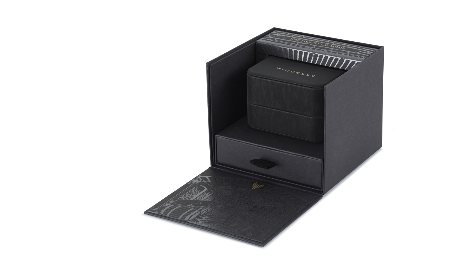 Our design seamlessly marries elegance and functionality, reflecting the sophistication of both the jewellery and the world of wine. Our client, Vincells blends the worlds of fine wine luxurious jewellery in a way unlike any other in the world to create something truly special. The handcrafted pieces, made of 18 karat gold and a unique stone which they meticulously crafted from real drinkable solidified wine, are surrounded by brillants. The unboxing experience is intended to evoke a wine tasting in an elegant cellar and meanwhile prolong the moment when finally the jewellery shines out from the box.