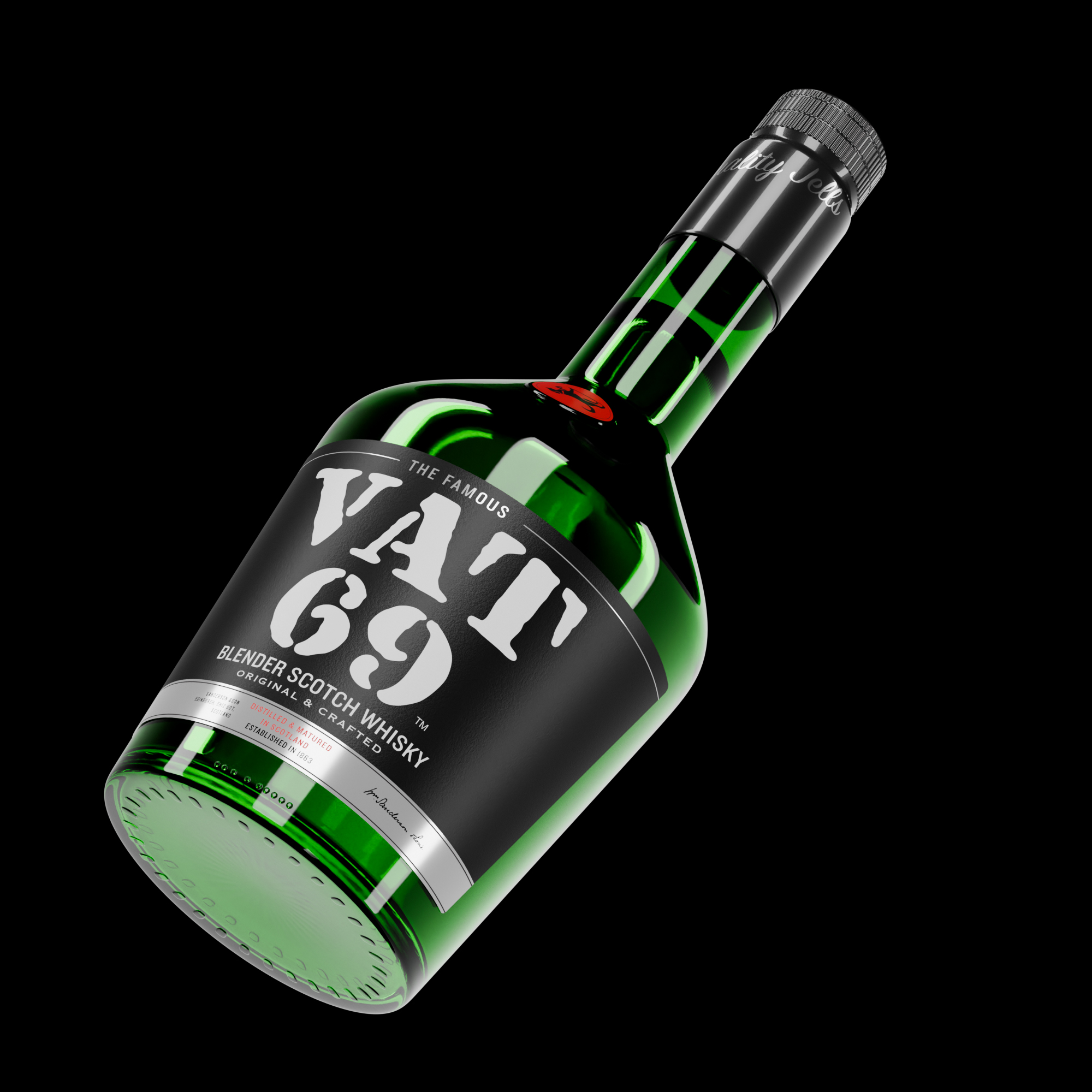 This project is a 3D product visualization of the iconic VAT 69 whiskey bottle, crafted entirely in Blender. The goal was to recreate a realistic studio-style render for portfolio use, focusing on clean materials, lighting, and accurate label placement.