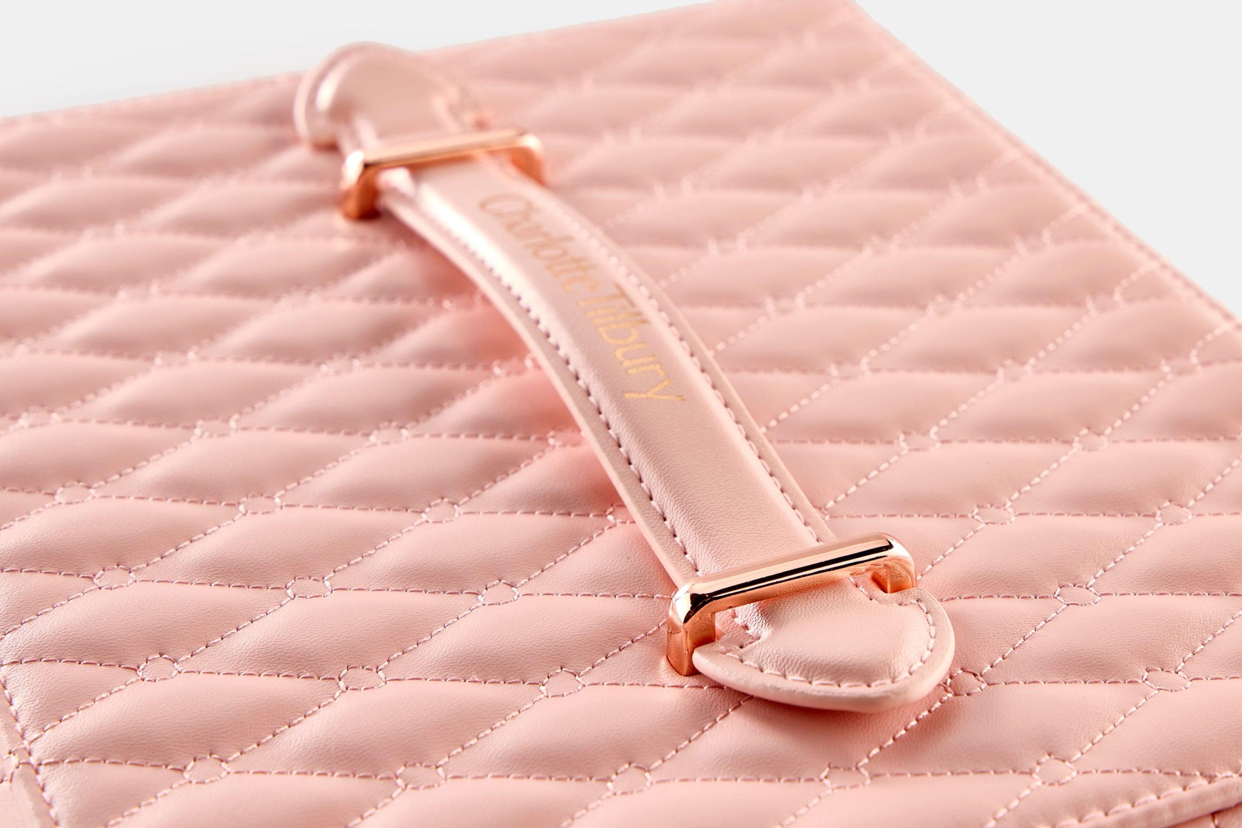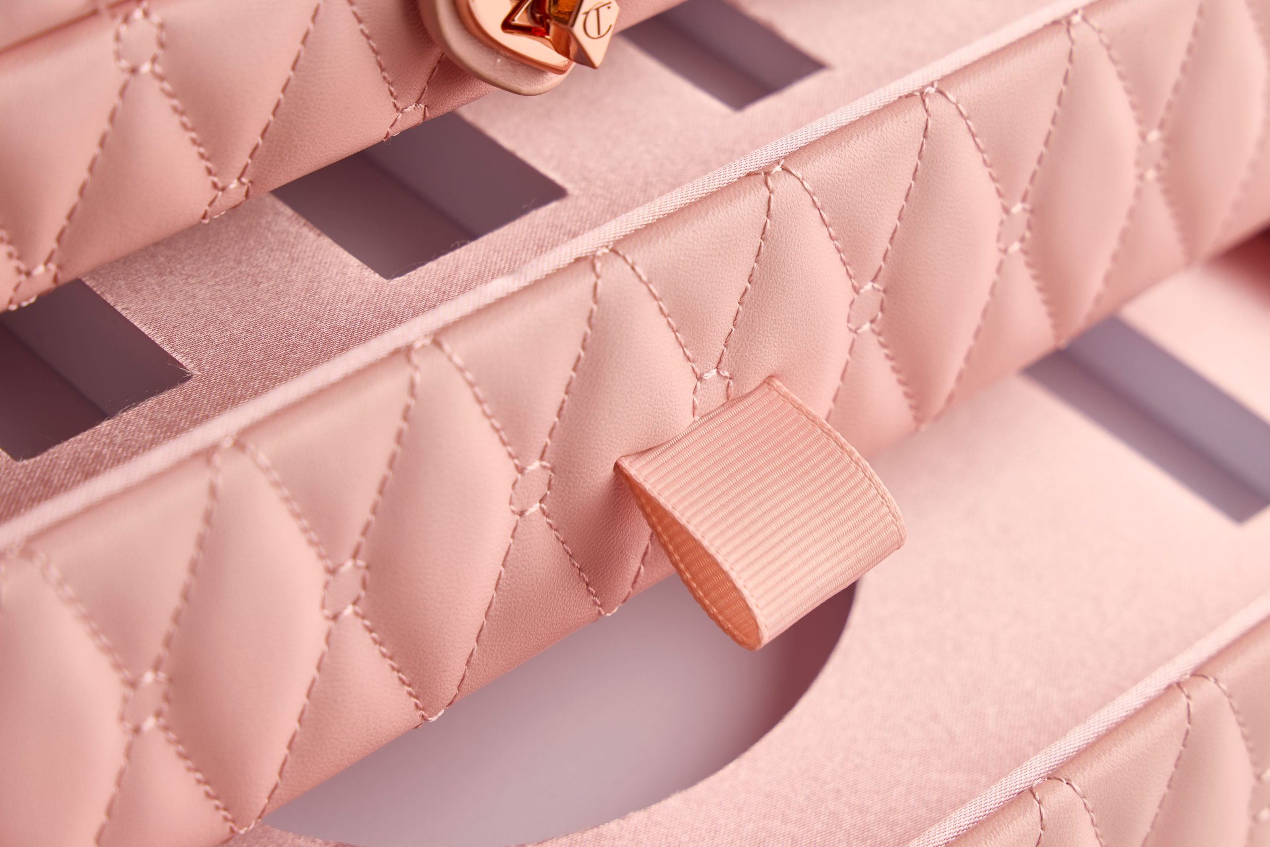 Together, all of these intricate details combine to deliver a powerful message to consumers. The quilted PU leather playfully toys with the phrase ‘pillow talk’ that inspired the name of the makeup line, while also reflecting the aesthetic of the products through its on-trend nude-pink colouring. The modern colour scheme blends seamlessly with more traditional luxe vanity elements such as rose gold clasps and an integrated mirror, cementing Charlotte Tilbury as a timeless beauty brand. And the whole design combines functionality and accessibility with a sense of exclusivity, summing up the empowering, uplifting spirit of the Charlotte Tilbury brand identity.
