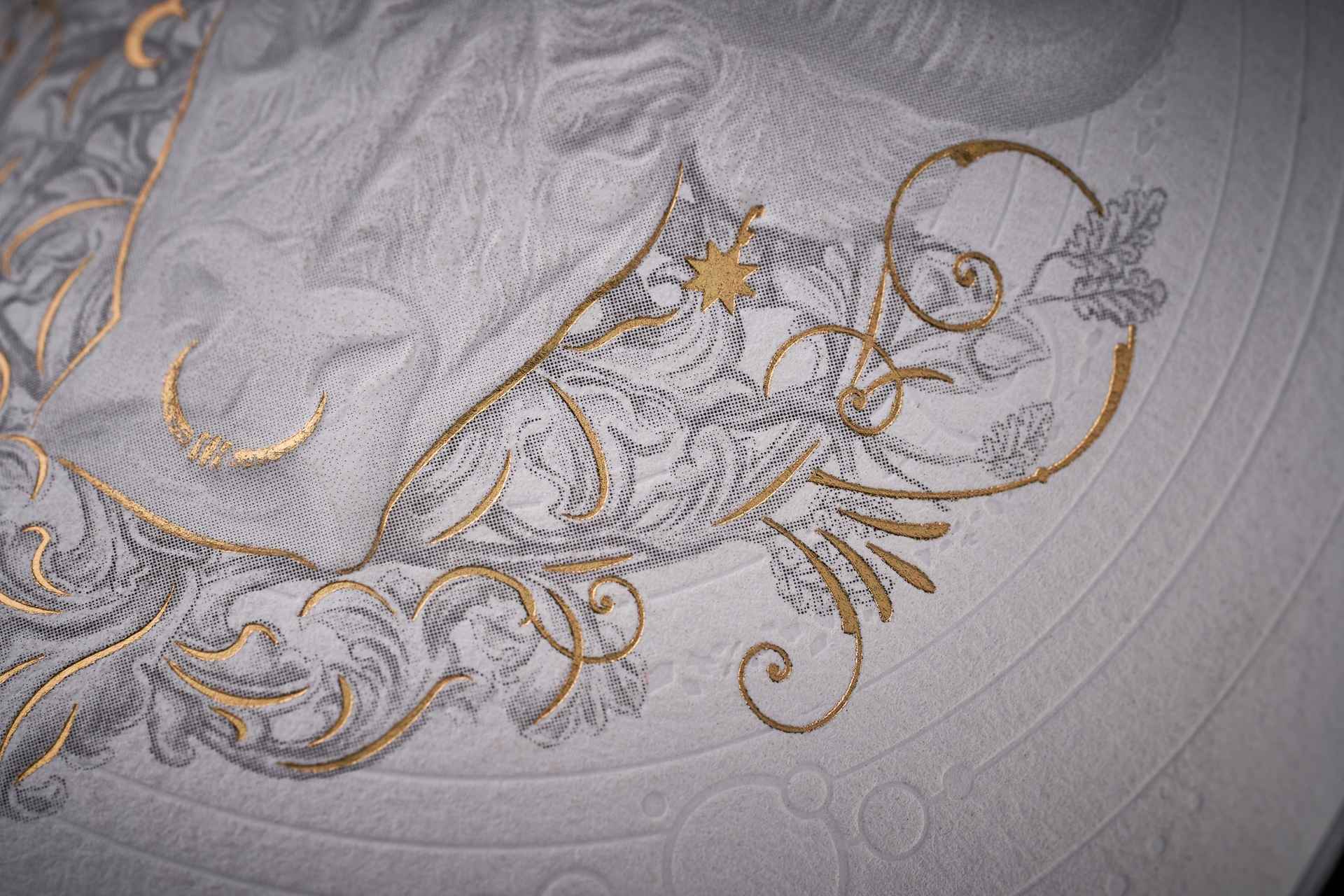 The centerpiece of the design is the stylized head of a buffalo — a nod to Moldova’s coat of arms and a symbol of strength and origin. Around it, an intricate web of esoteric elements evokes the ritualistic, almost alchemical process of winemaking. The label itself is rich in tactile detail: deep embossing, blind deboss, multi-level 3D sculpted foil stamping — all executed to create an immersive sensory experience. Ciumai’s debut into the premium category is not just a wine, but a story of place, craftsmanship, and transformation.