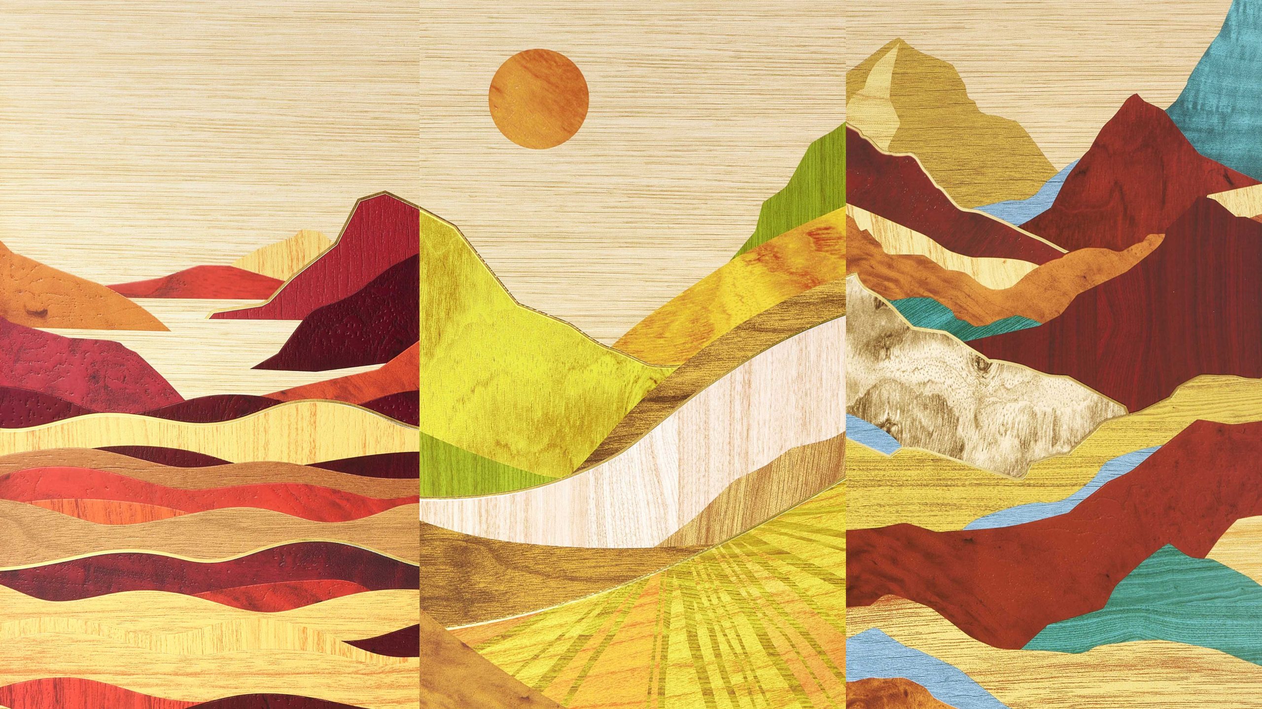 The handmade oak presentation case was designed as an elegant centrepiece. With intricate marquetry and graceful curves, it pays homage to the wooden staves of the wine casks that play a crucial role in crafting these whiskies. An impactful front panel, featuring the landscape art, slides upwards to showcase the three exquisite bottles within against their respective section of the landscape.