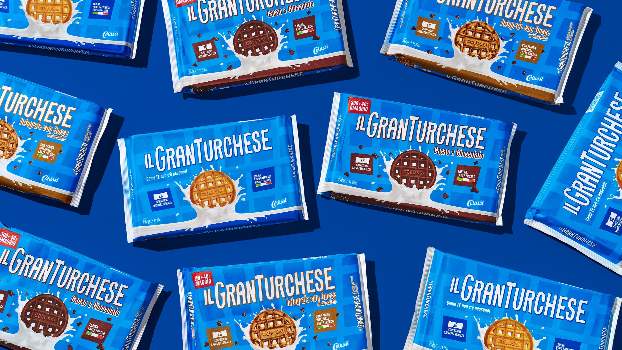 Encompassing the entire packaging range – classic, cocoa and chocolate, wholewheat with chocolate chips and single-portion pack, the restyling of the GranTurchese packaging was driven by the goal of modernizing the product’s visual identity, making it more impactful, clear, and recognizable on shelves.