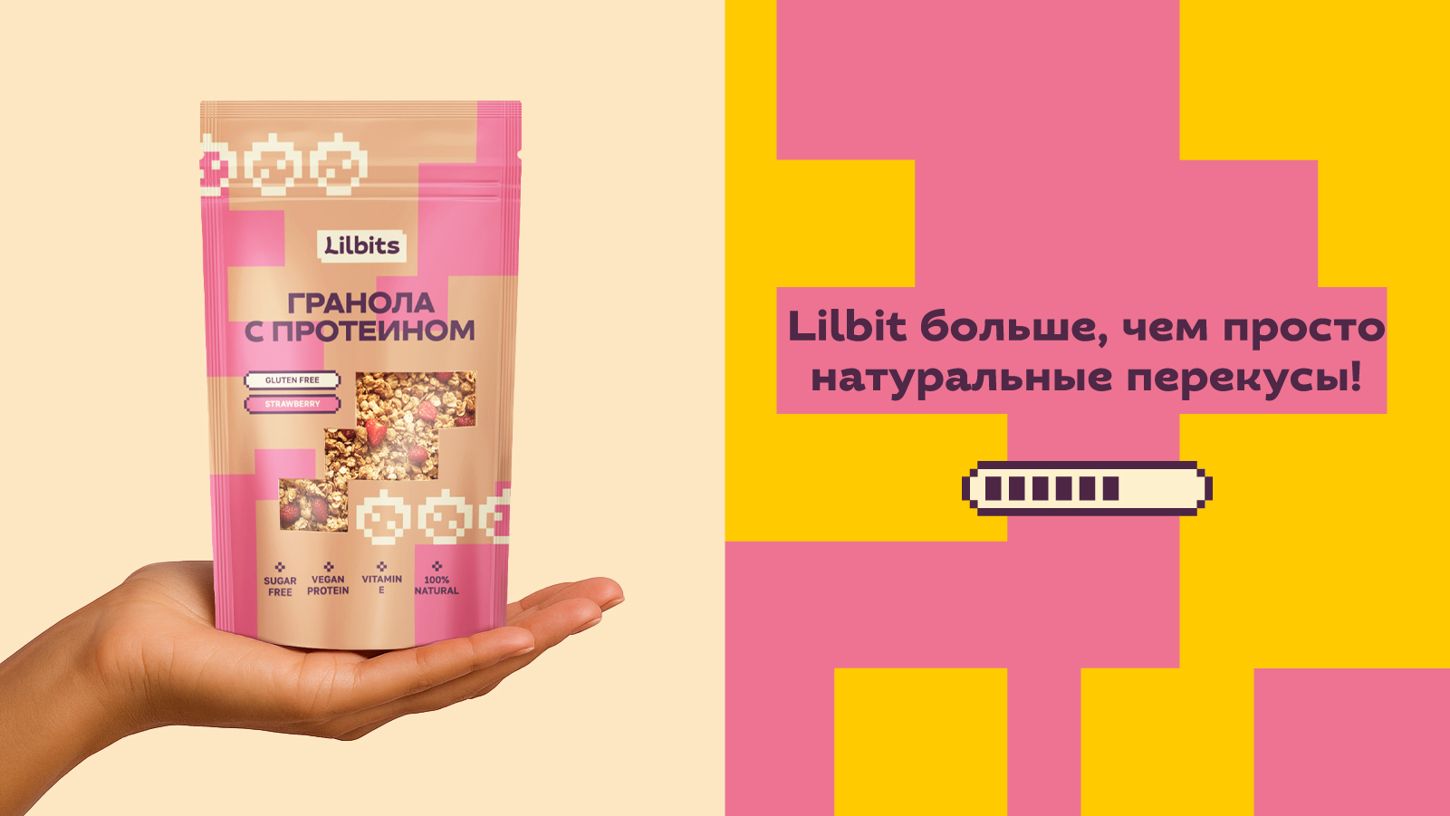 We created a compact, lively, and memorable name—Lilbits—which plays on the words little bites (small bites of pleasure) and lil’ bit (reflecting the brand’s concept of small steps toward a goal).