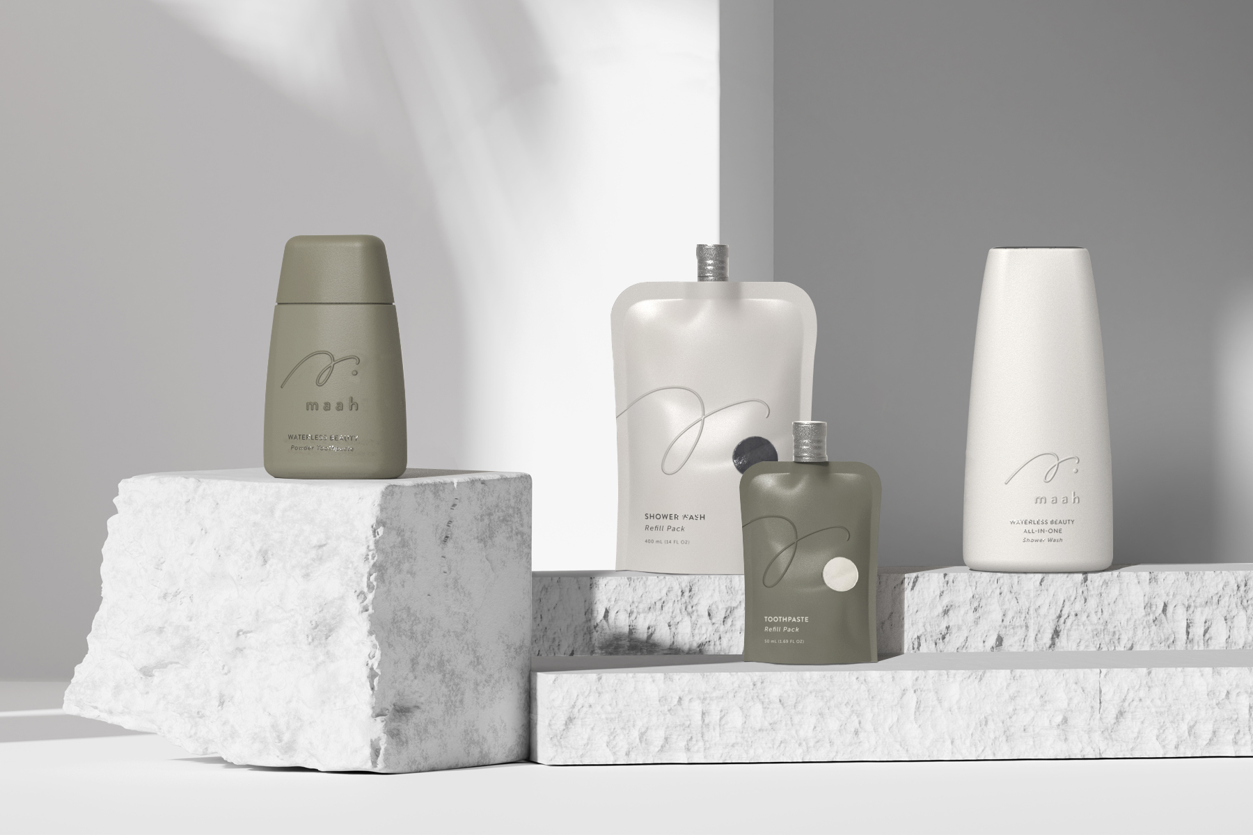 Maah is a conceptual beauty brand rooted in nature and minimalist living, created for eco-conscious consumers seeking a cleaner, more intentional lifestyle. Its innovative product line reimagines daily routines through the lens of eco-minimalism, eliminating the need for excessive plastic bottles and overpackaged items in the bathroom.