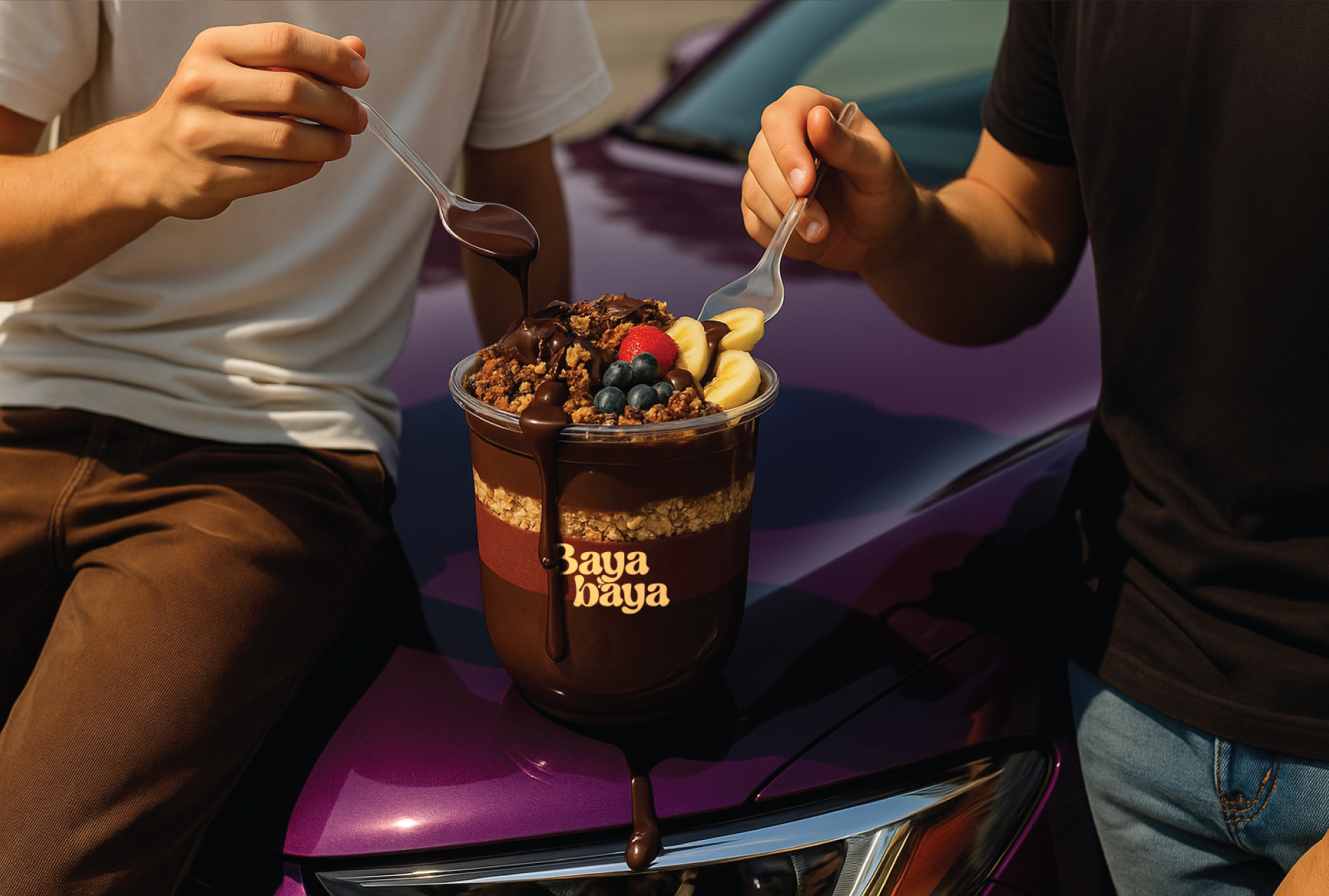 Baya Baya is a bold, tropical inspired açaí bowl brand that brings rhythm, color, and wholesome goodness to life. Designed as a modern day tropical retreat, the brand merges retro aesthetics with playful energy, offering customers not just a bowl but a vibrant, multi-sensory experience. From its name to its packaging and visual system, Baya Baya embodies joy, freshness and the richness of açaí culture.