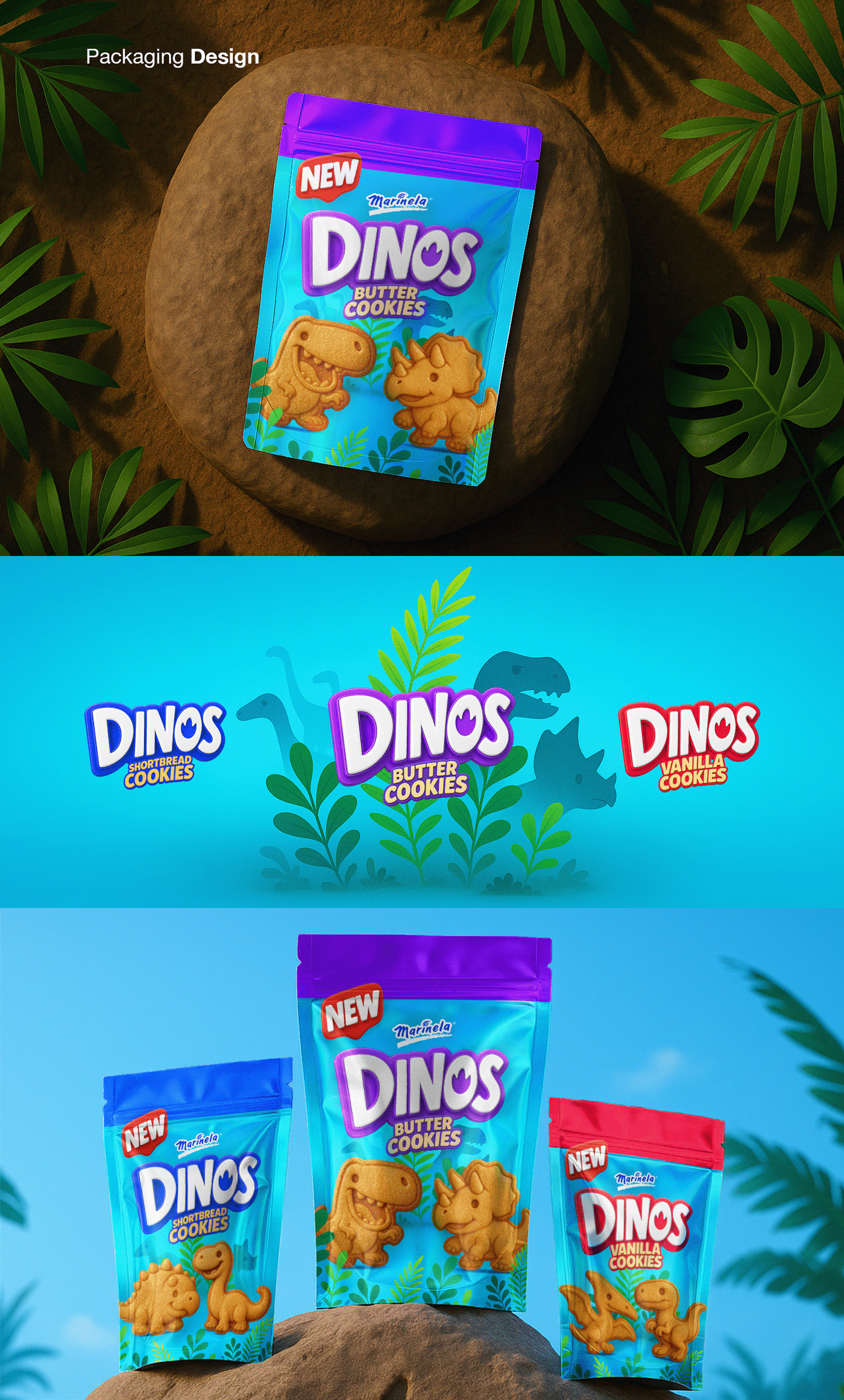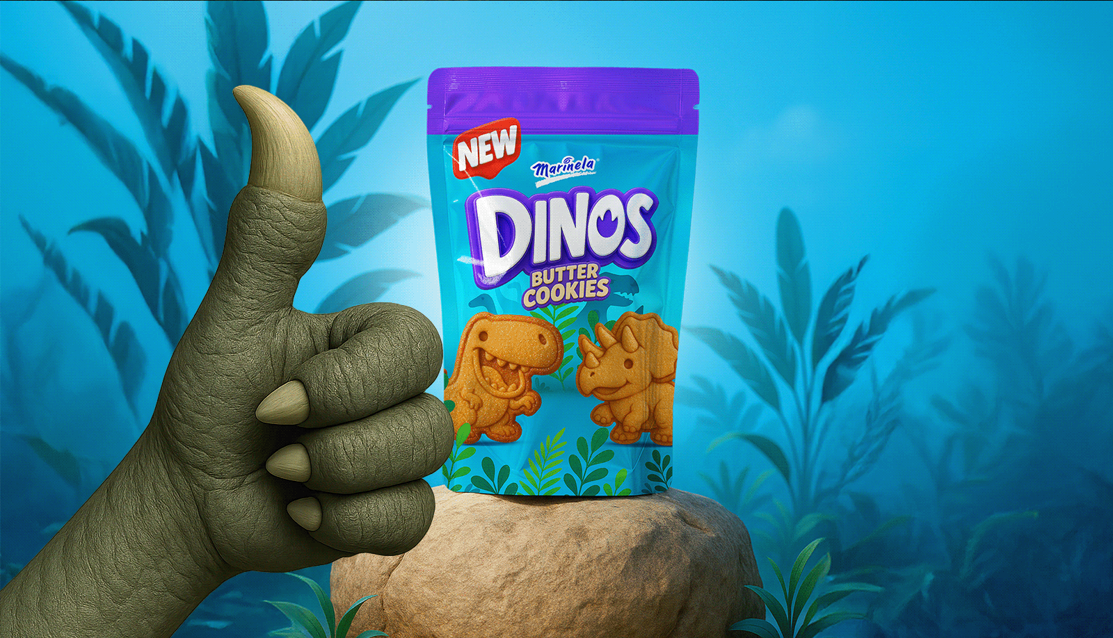 This project was part of a pitch for Grupo Bimbo, specifically for the Marinela brand. The goal? To create a new line of dinosaur-shaped cookies, inspired by a European classic but with all the flavor and personality of a Mexican brand.
