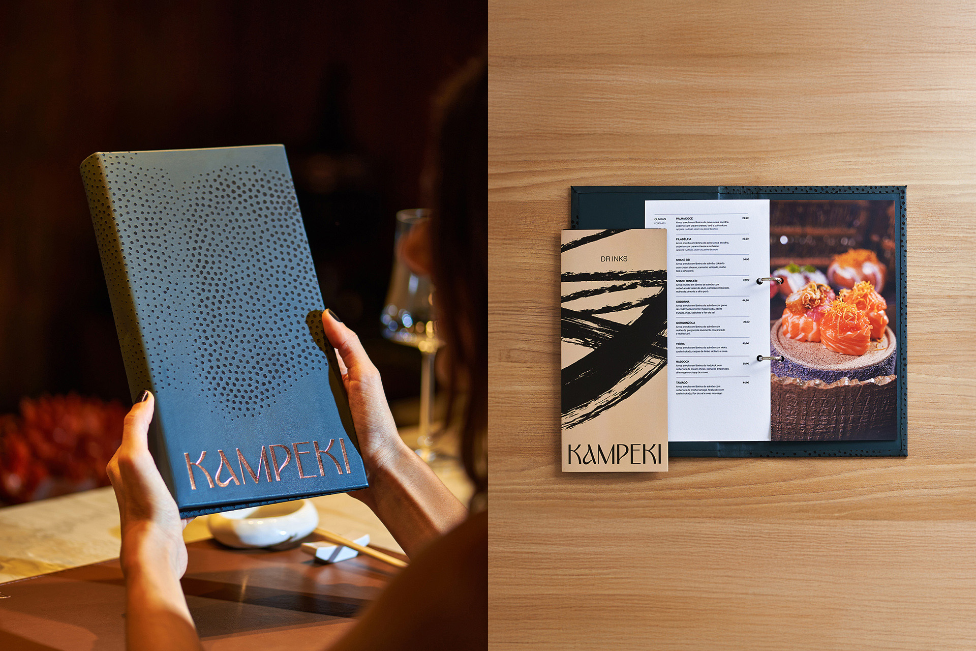 Kampeki: the sushi bar that transforms technique into a sensory experience. Breaking monotony in a traditional segment: this restlessness led Kampeki to rethink its identity. Sophisticated, bold, and attentive to detail, the restaurant already offered a remarkable experience. It only lacked a visual expression of equal intensity.