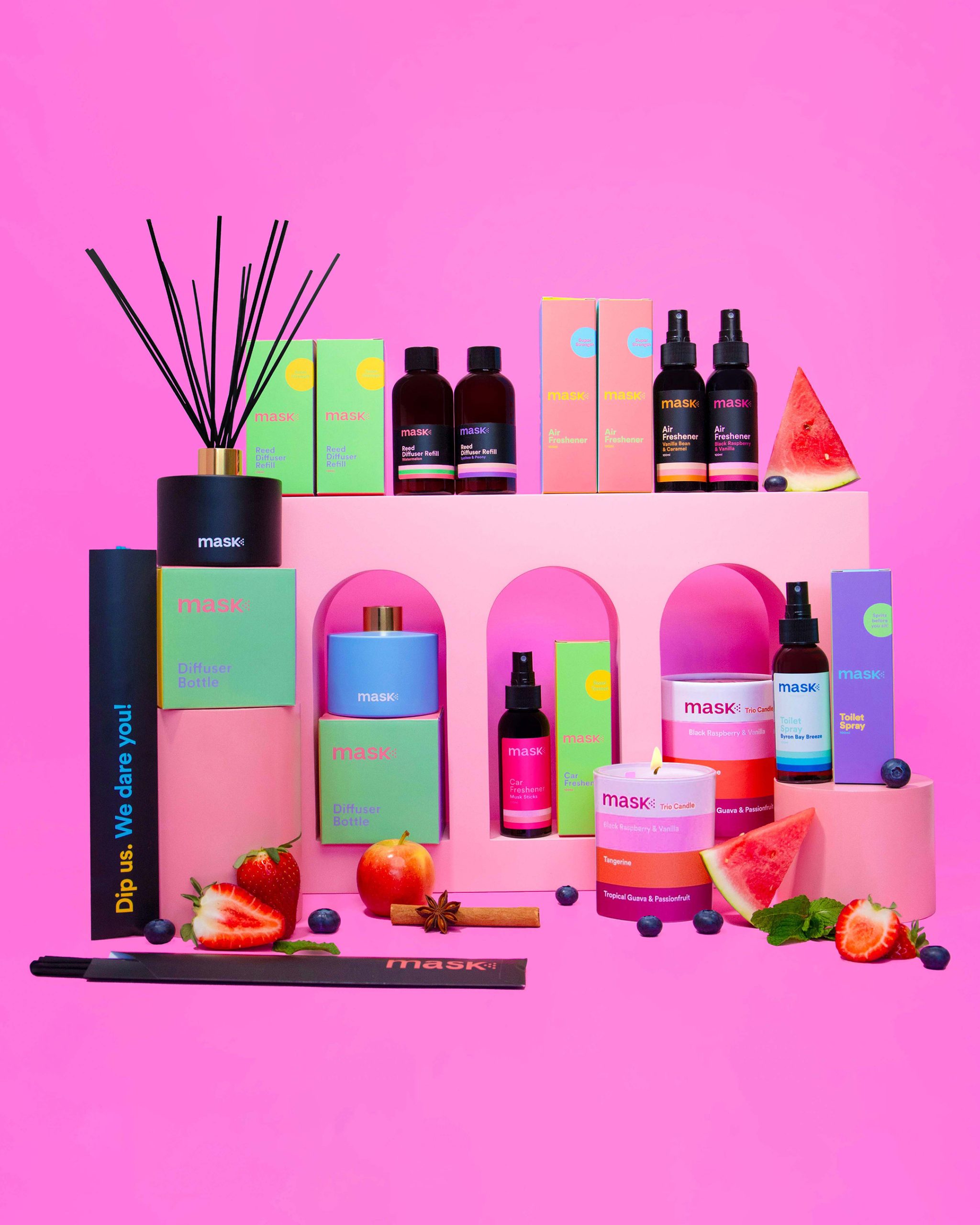The modular system enables effortless expansion, allowing new scents and formats to integrate seamlessly into Mask’s playful, colourful identity.