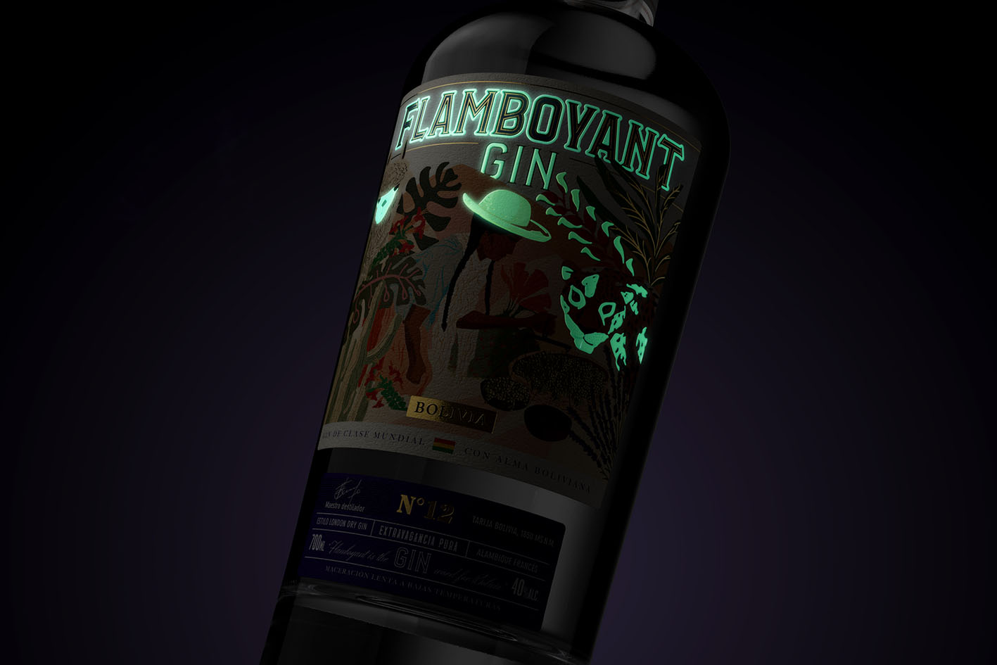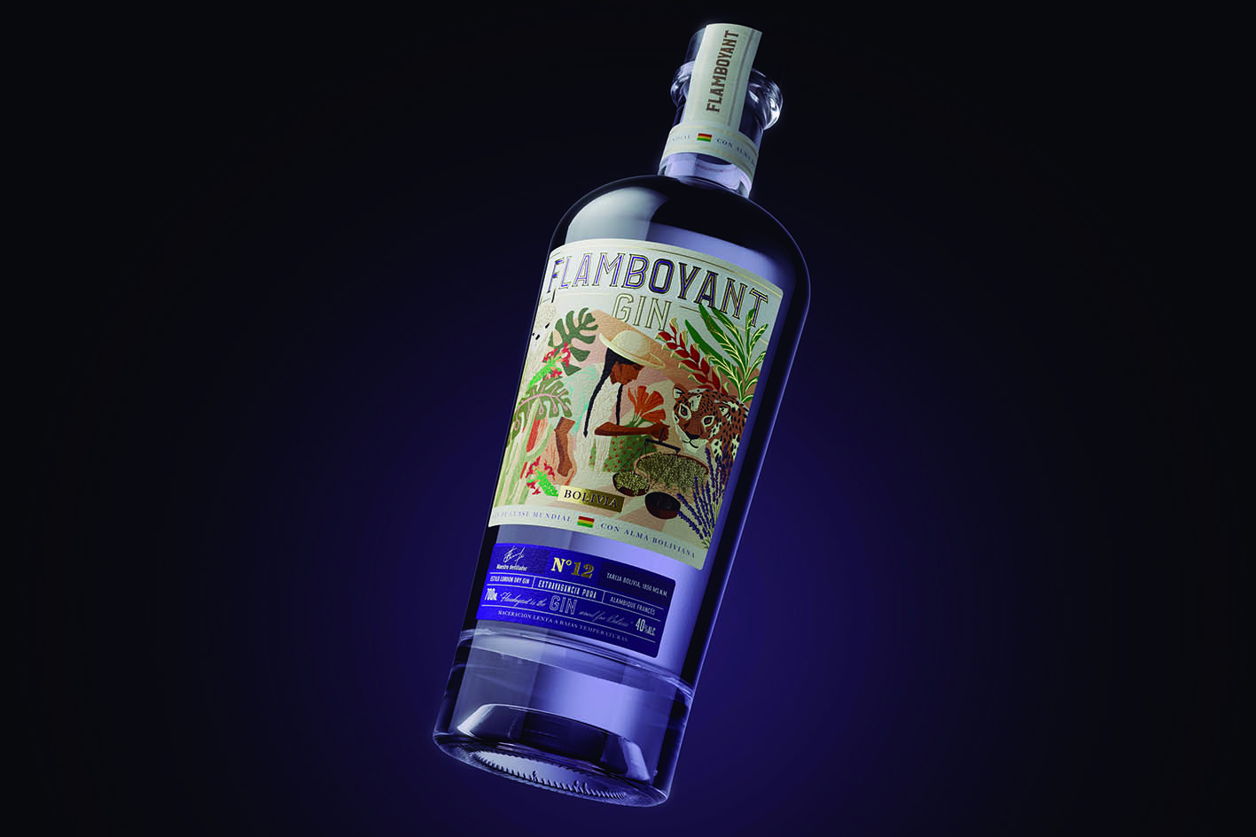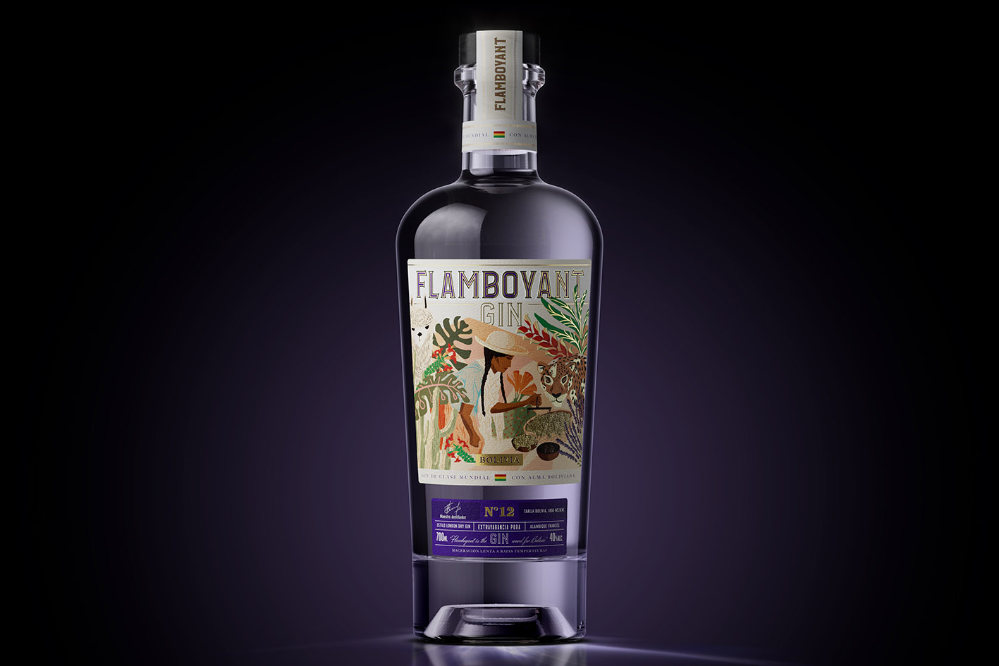 The design of Flamboyant Gin’s label aimed at capturing the cultural essence of Bolivia, translating its identity and visual richness into packaging that would authentically connect with the consumer.