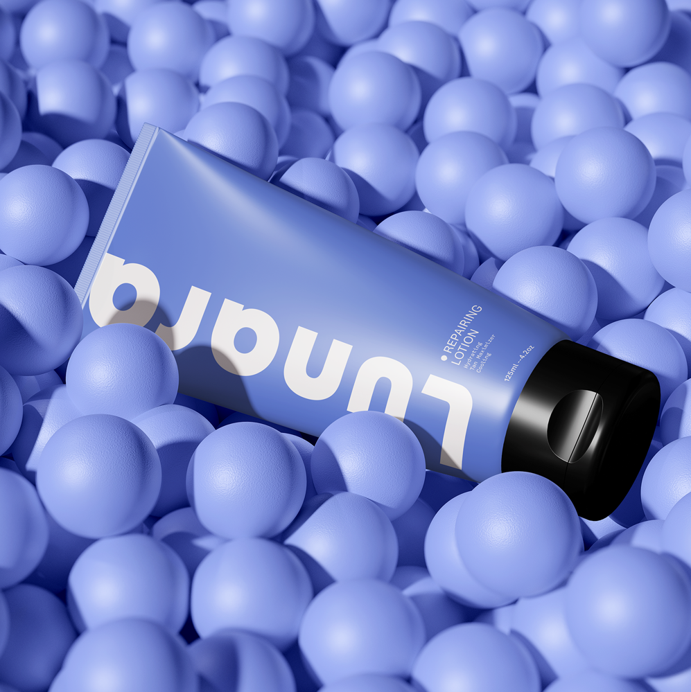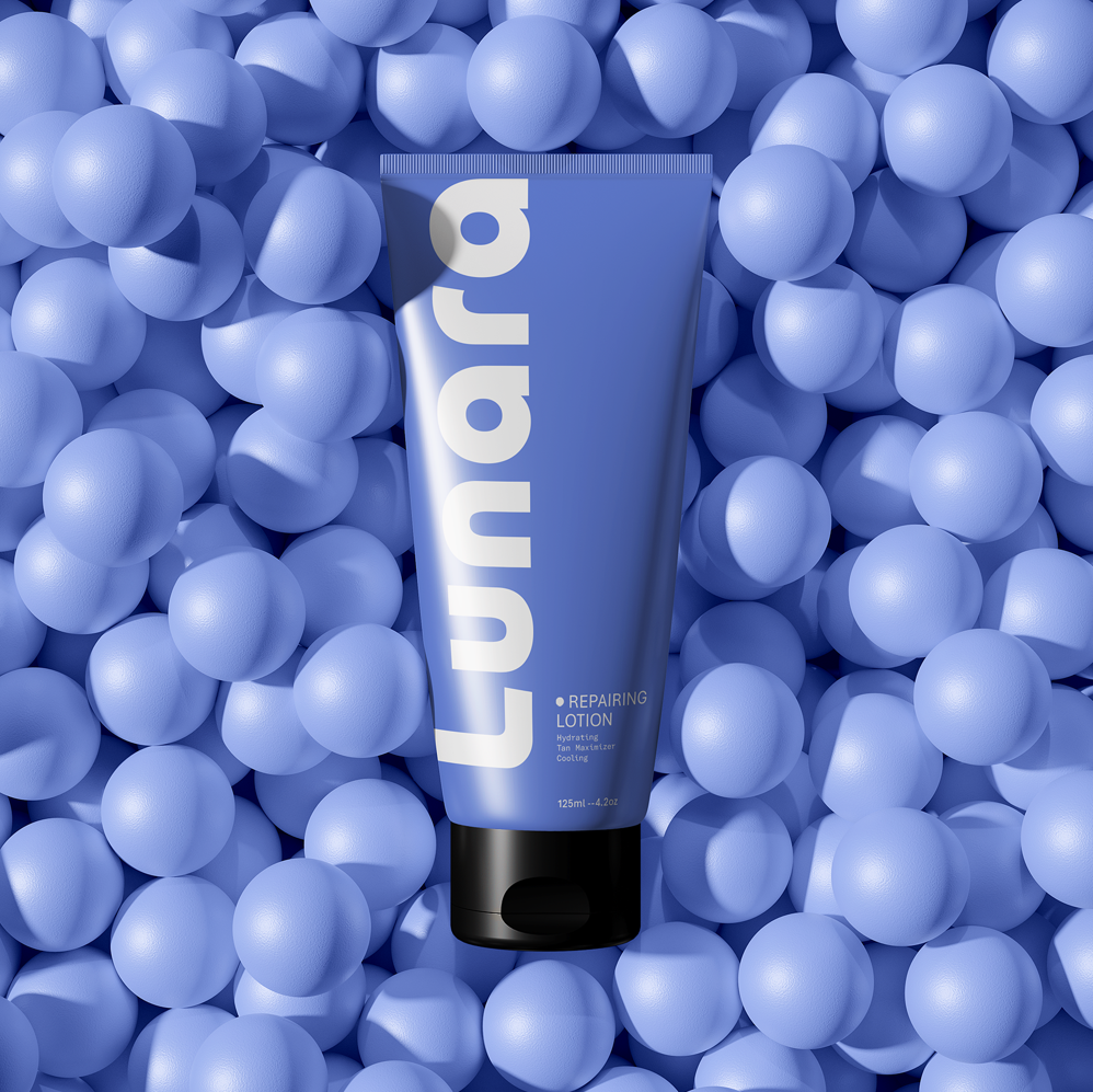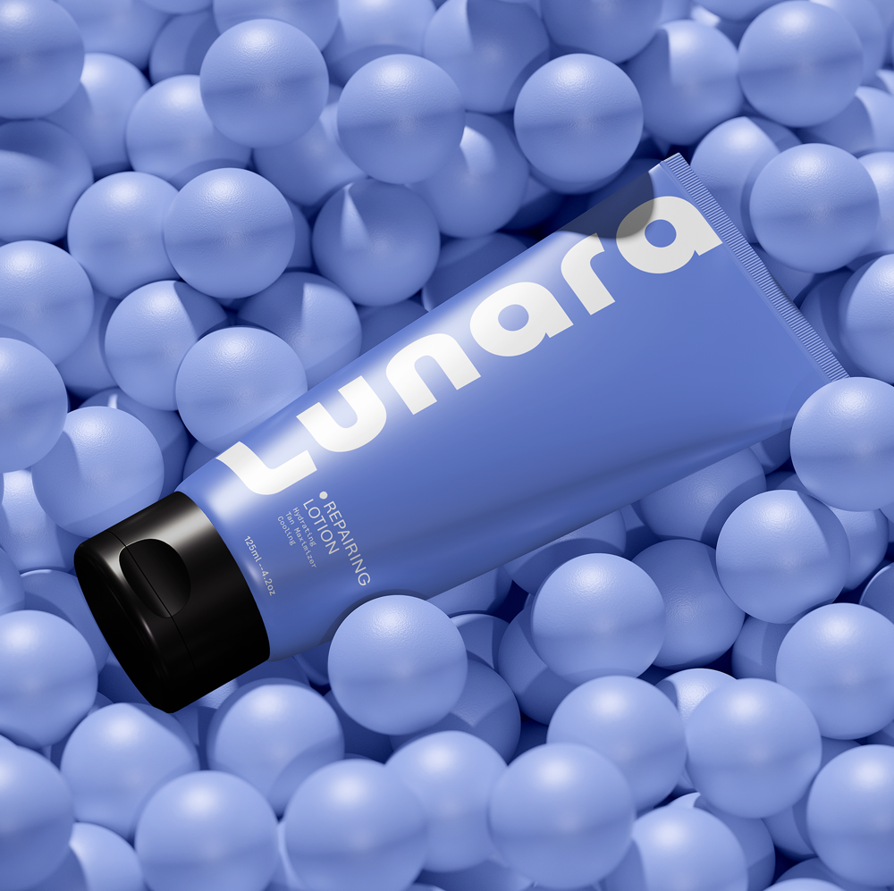 Lunara Repairing Lotion: A deeply hydrating and restorative lotion to soothe and strengthen the skin barrier. (Represented by the calming lavender blue packaging)