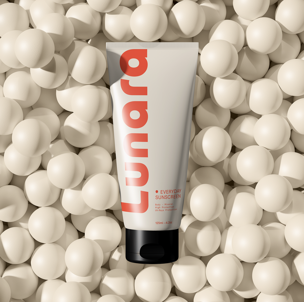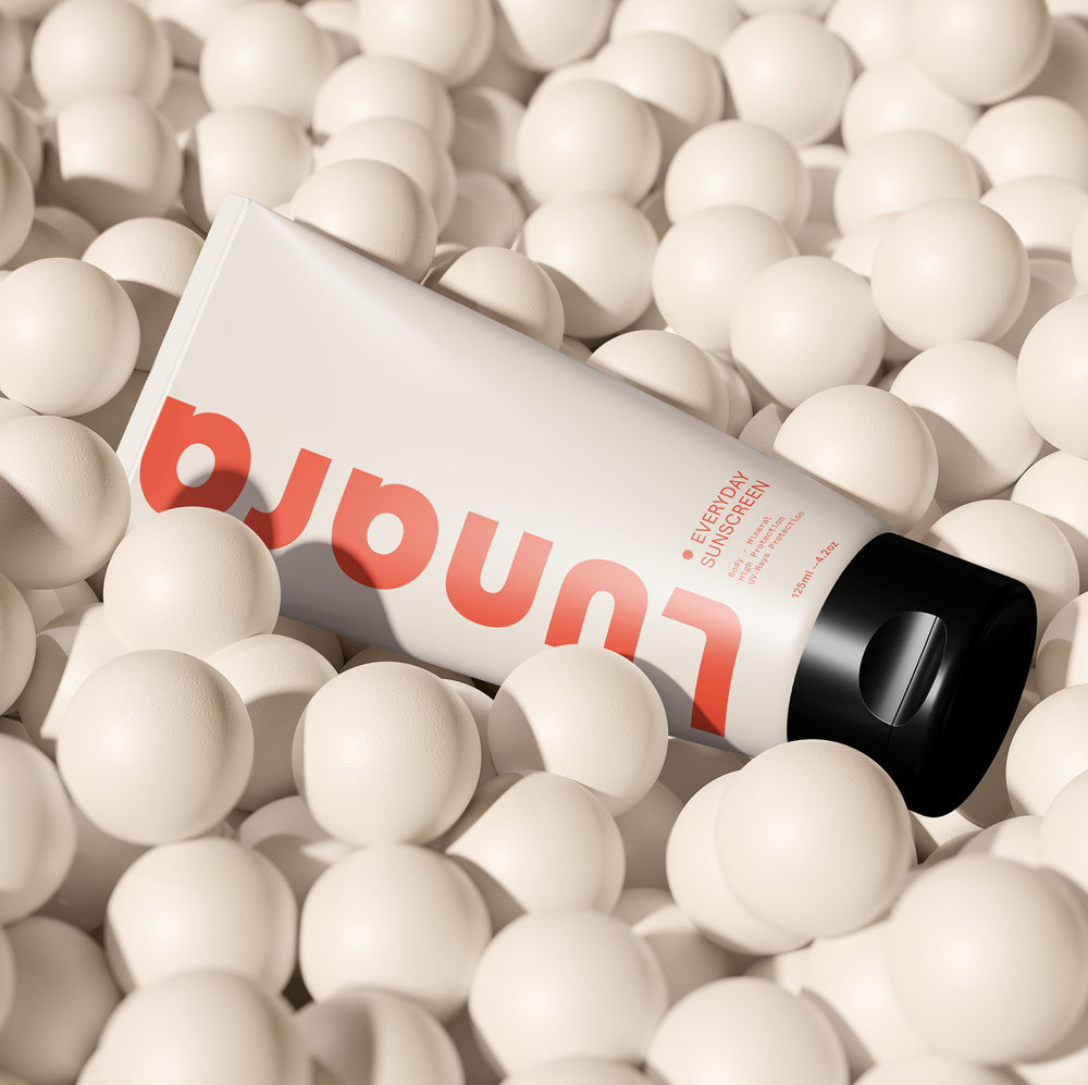 Lunara Everyday Sunscreen: Lightweight, broad-spectrum SPF for daily protection, designed to be non-greasy and invisible. (Represented by the soft ivory packaging)