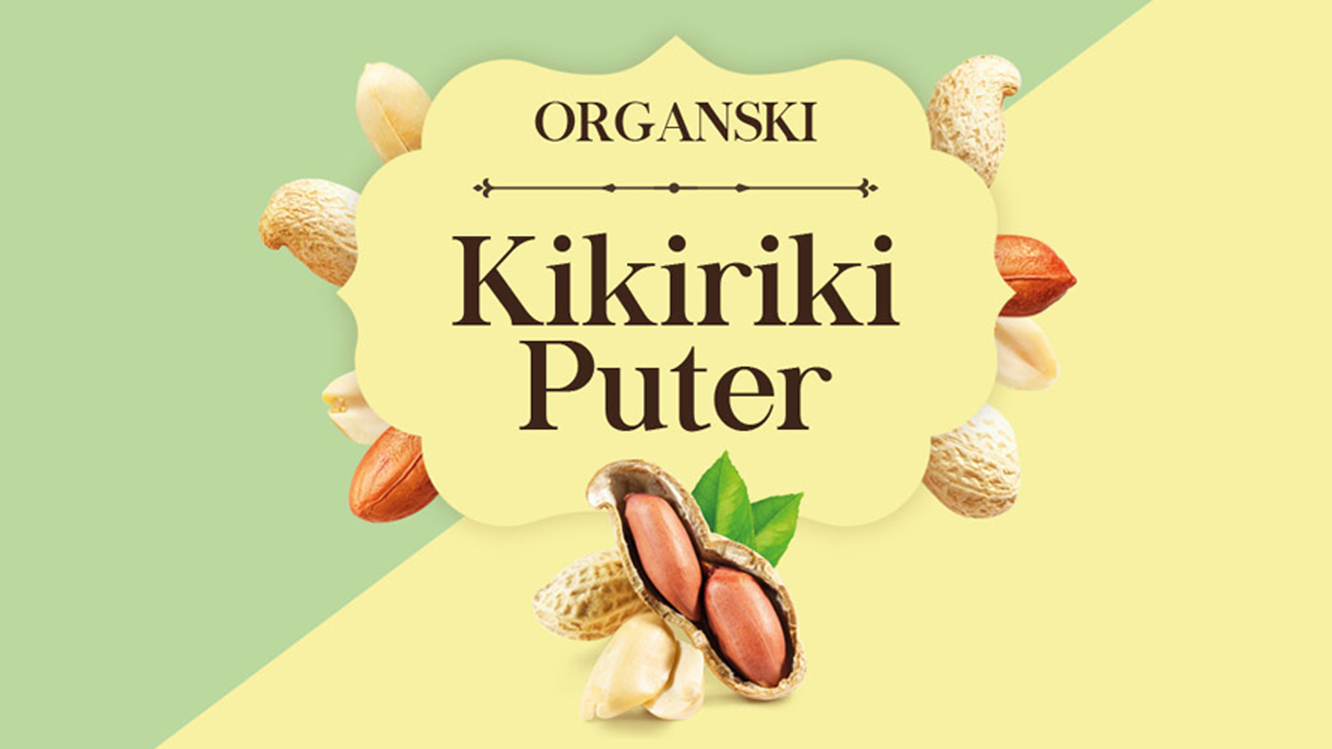 Inspired by nature, the color palette harmoniously combines soft pastel greens and yellows, evoking freshness and purity. Distinctive typography with a touch of classic elegance ensures clear brand communication, while playful visuals of peanuts, both whole and shelled, add depth and authenticity to the design.