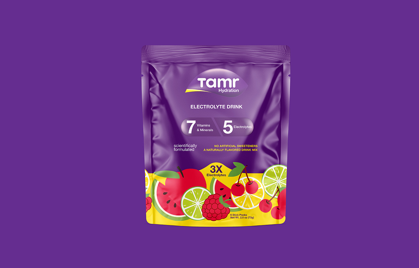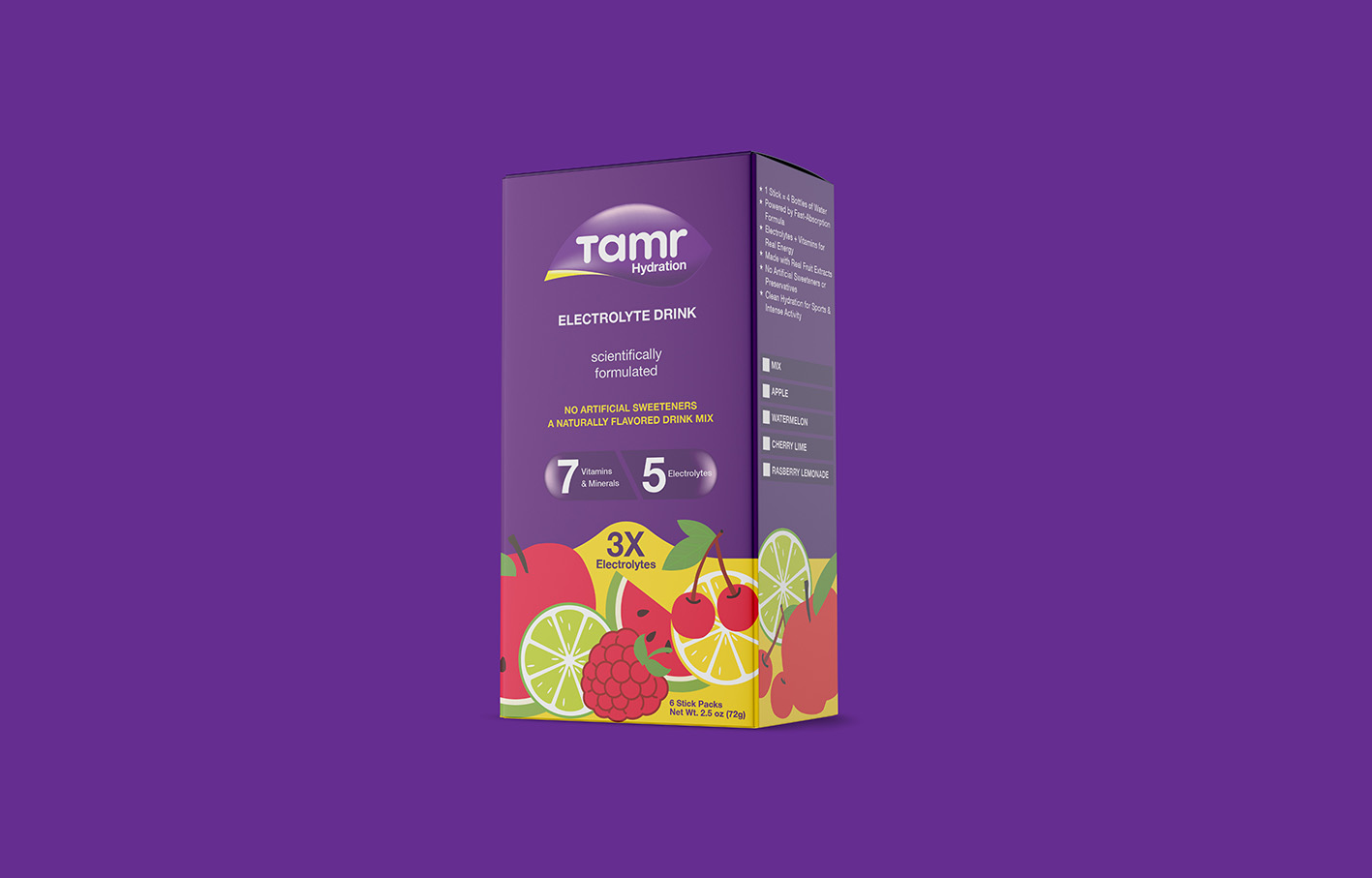 Tamr hydration – Electrolyte drink Posted on July 8, 2025July 8, 2025 Beverages Energy Drink 289910 Submitted By: mostafa vafaei Design of sachet packaging for an electrolyte drink, developed across various packaging materials.