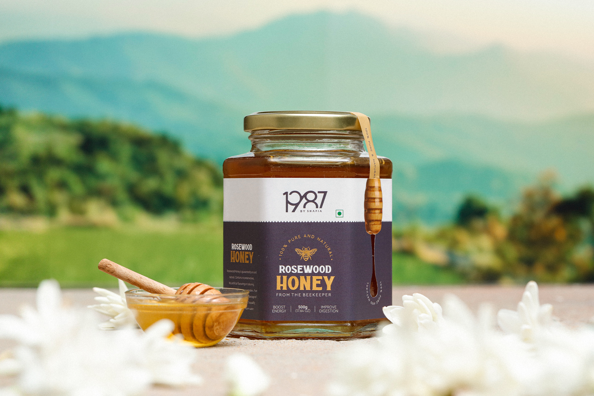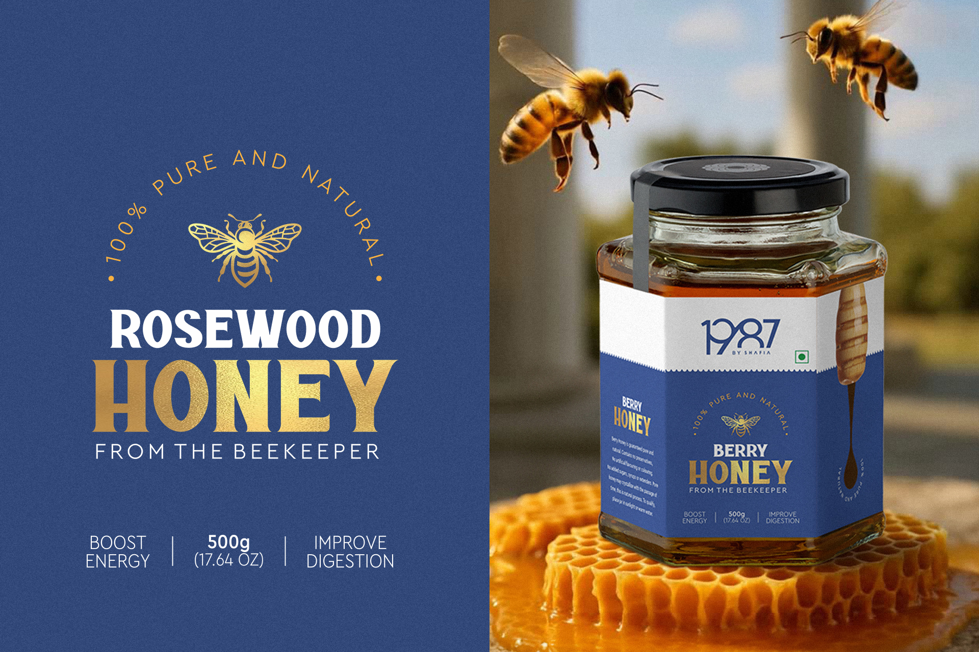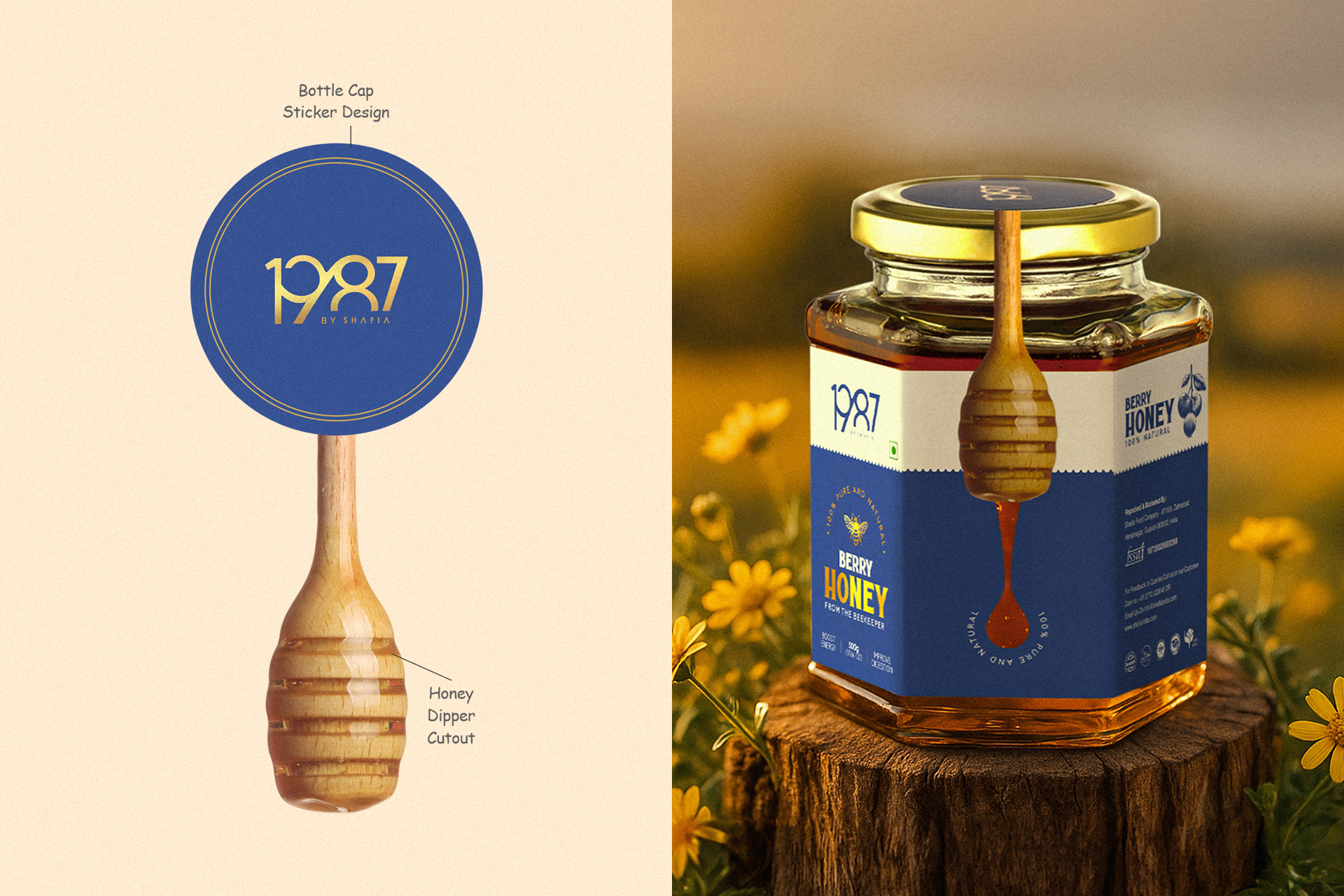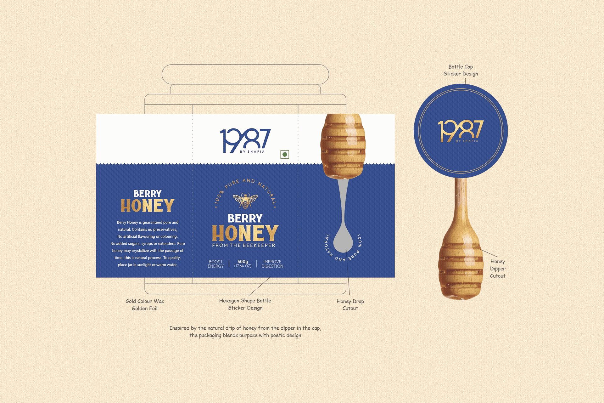 For 1987 by Shafia, we transformed traditional honey packaging into a refined and story-rich experience. Drawing from the purity and legacy of handcrafted honey, the brand identity and packaging were designed to celebrate authenticity with modern elegance.