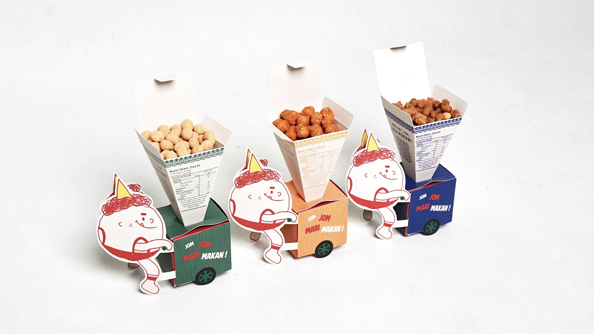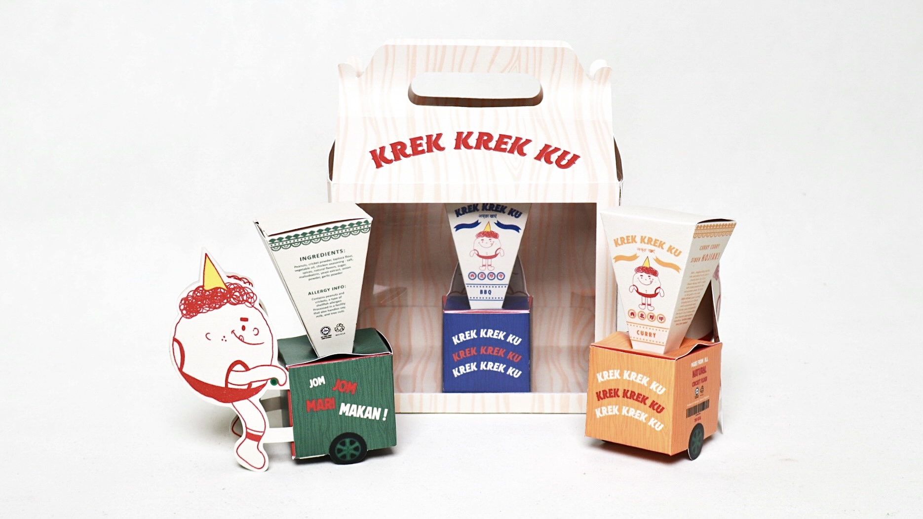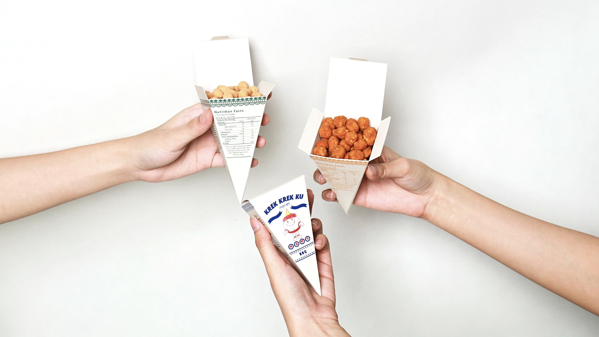 KREK KREK KU embodies unity through diversity. Our cone packaging honors Malaysia’s kacang puteh heritage via recyclable materials and multilingual panels featuring vintage typography celebrating linguistic diversity while cricket flour bridges generations and diets. Malay name (“My Crunchy”) roots cultural identity. This fusion of tradition-to-future, local/global, and taste/sustainability fosters inclusive collaboration, uniting communities around shared values and crunch universal appeal.