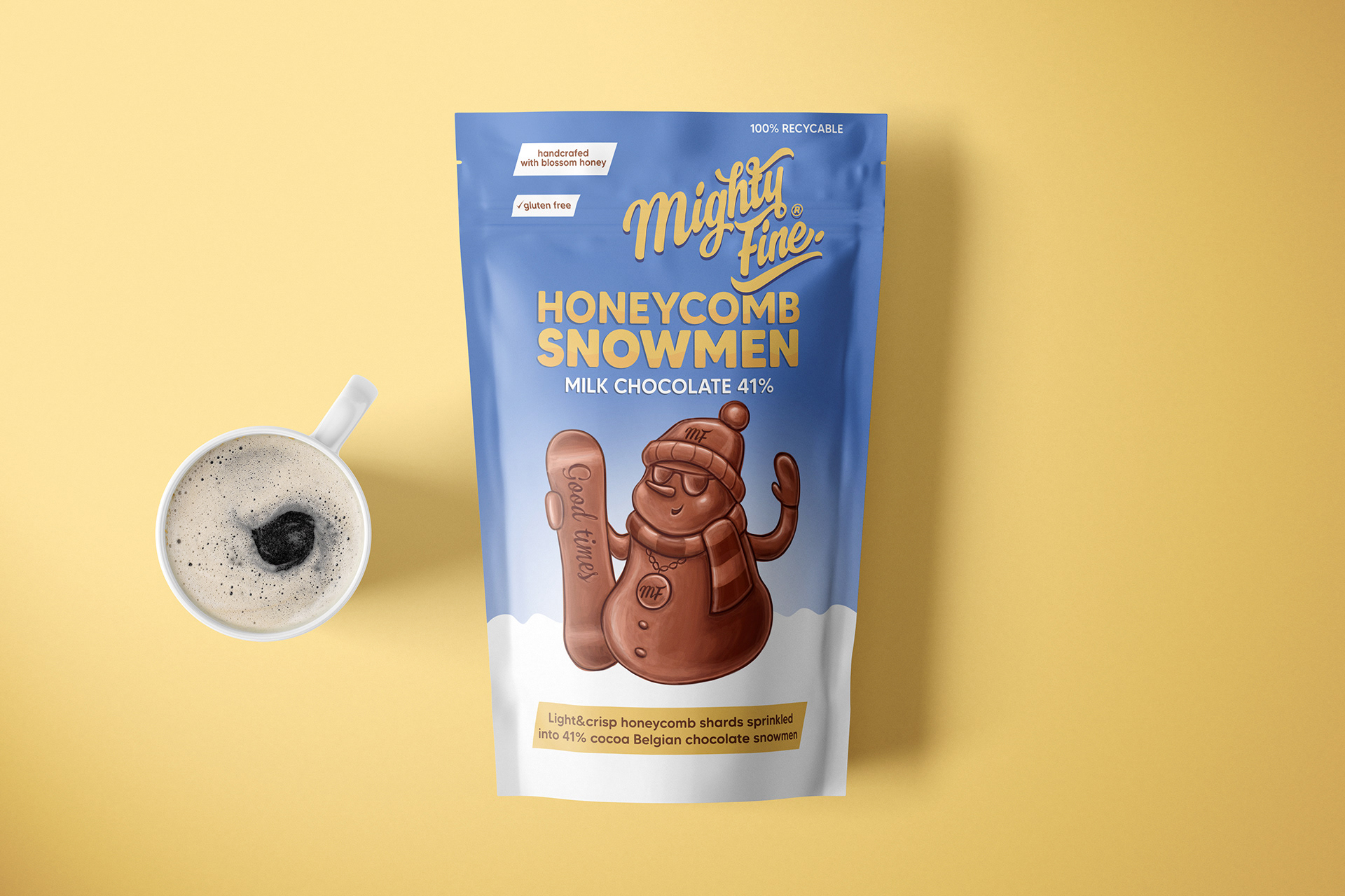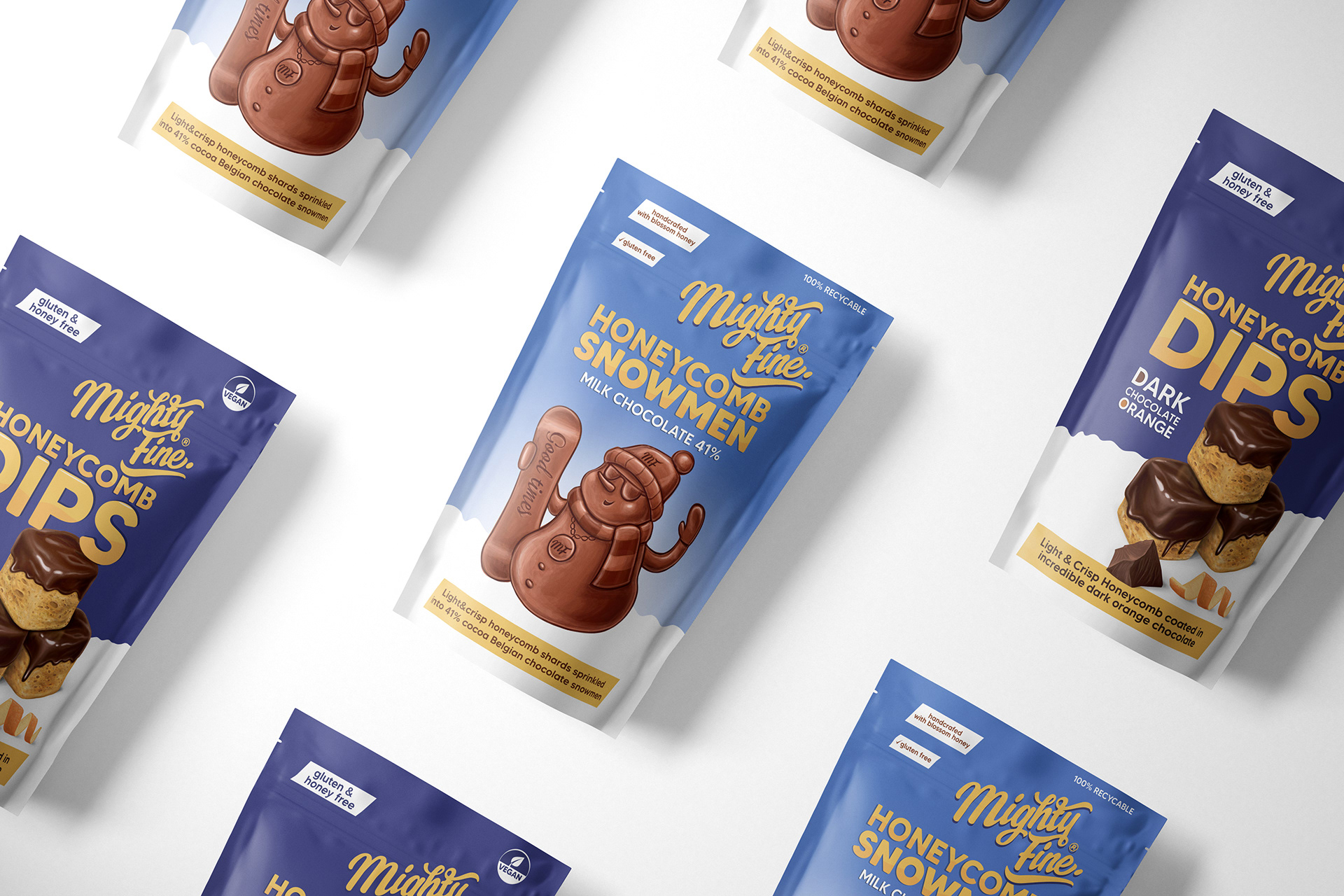 This project focuses on the development of a complete packaging design system and a suite of custom illustrations for “Mighty Fine Chocolate,” an authentic brand specializing in handcrafted chocolates and chocolate-covered honeycombs. The design approach blends artisanal elegance with whimsical, nature-inspired artwork to create an indulgent, story-rich experience for customers.